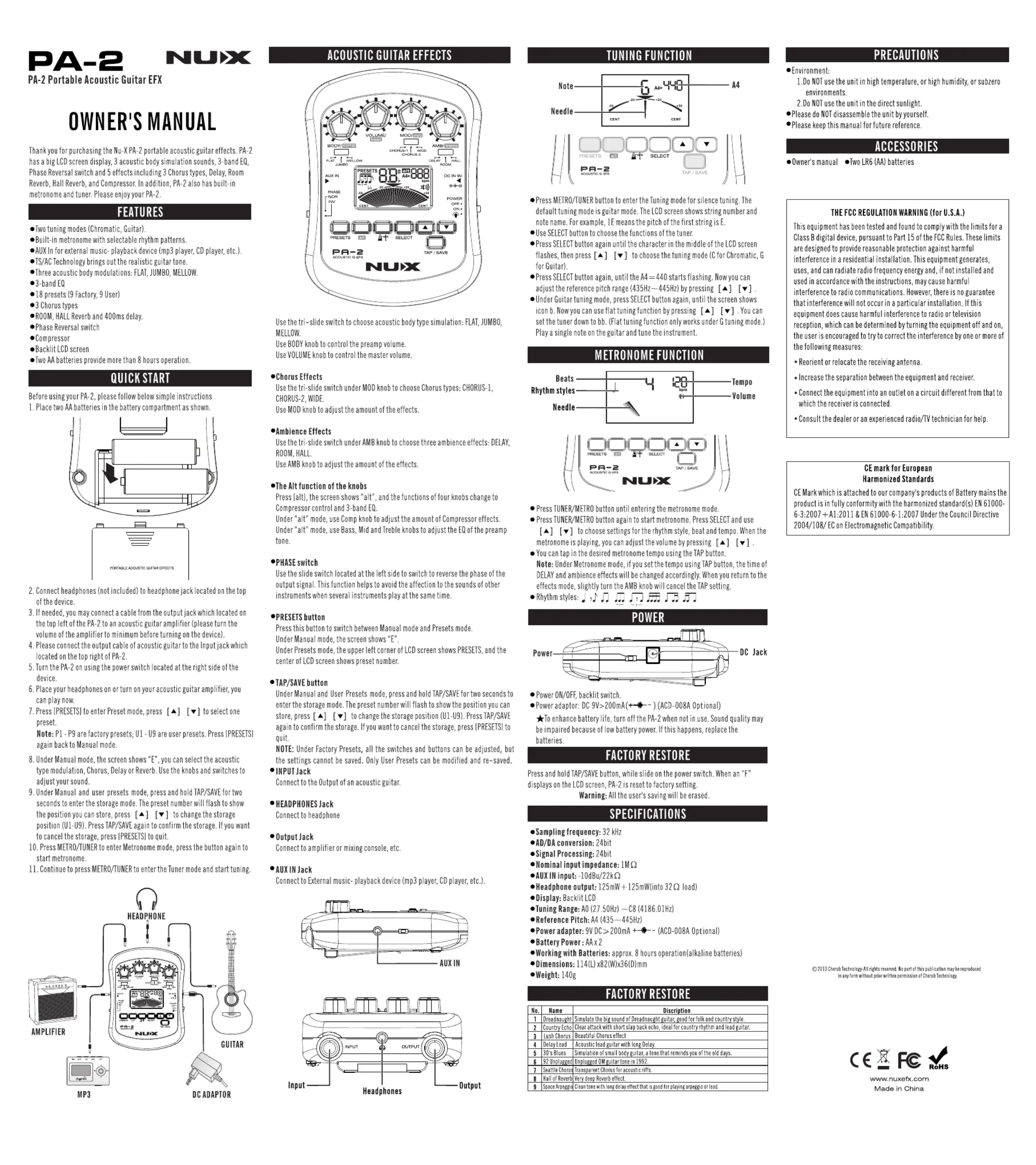 NUX PA-2 Handleiding