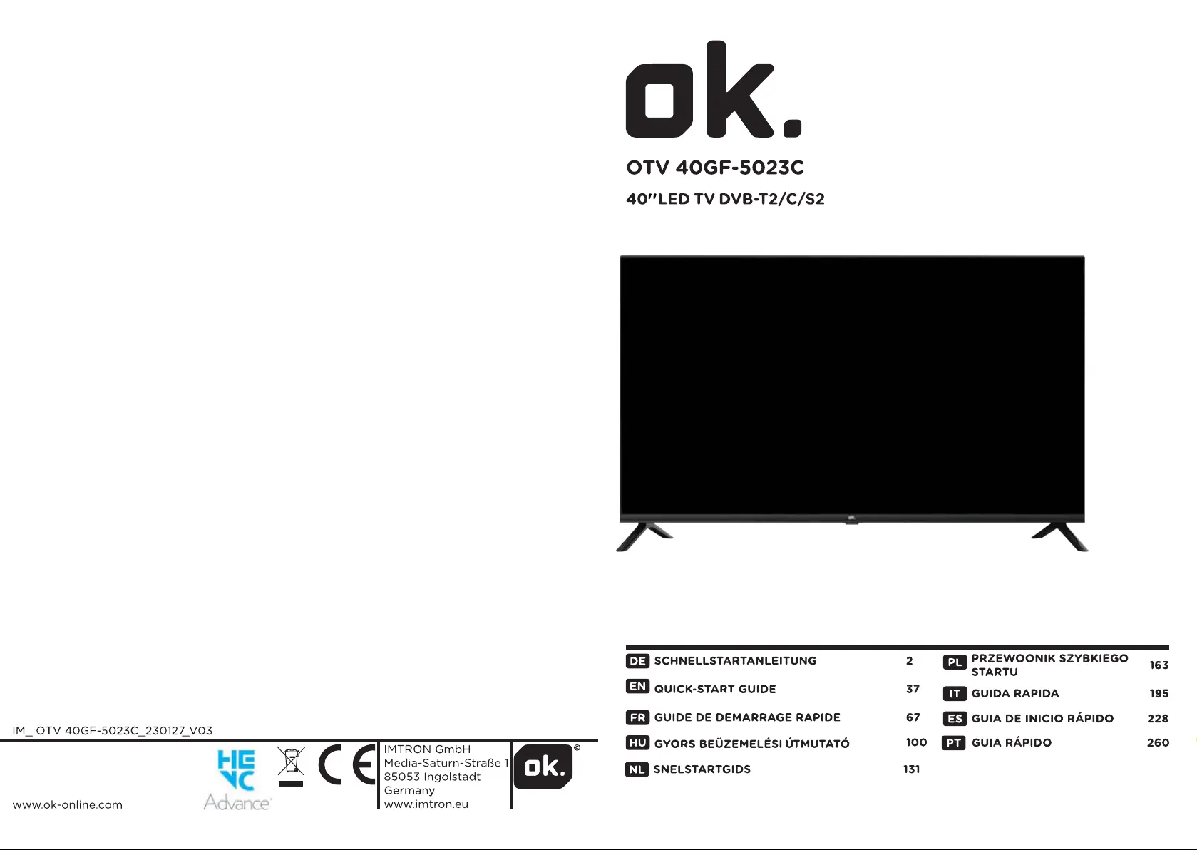 Bekijk gratis de handleiding van OK OTV 40GF-5023C (292 pagina’s), behorend tot de categorie Televisie. Deze gids werd als nuttig beoordeeld door 31 mensen en kreeg gemiddeld 4.5 sterren uit 2 reviews. Heb je een vraag over OK OTV 40GF-5023C of wil je andere gebruikers van dit product iets vragen? Stel een vraag