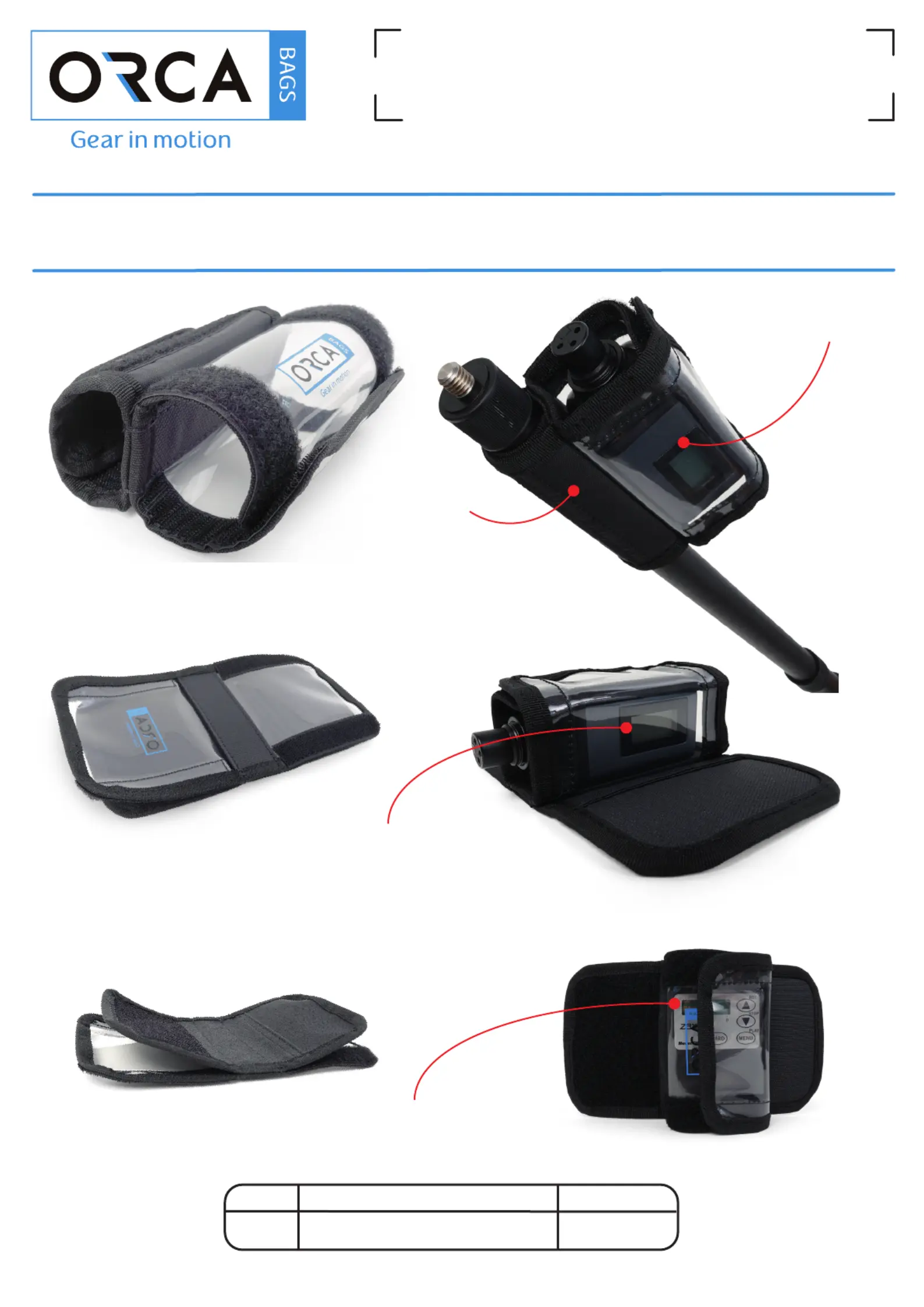 The Orca Bags Boom Pole Transmitter Pouch can hold several dierent sizes of transmitters to any pole, tripod