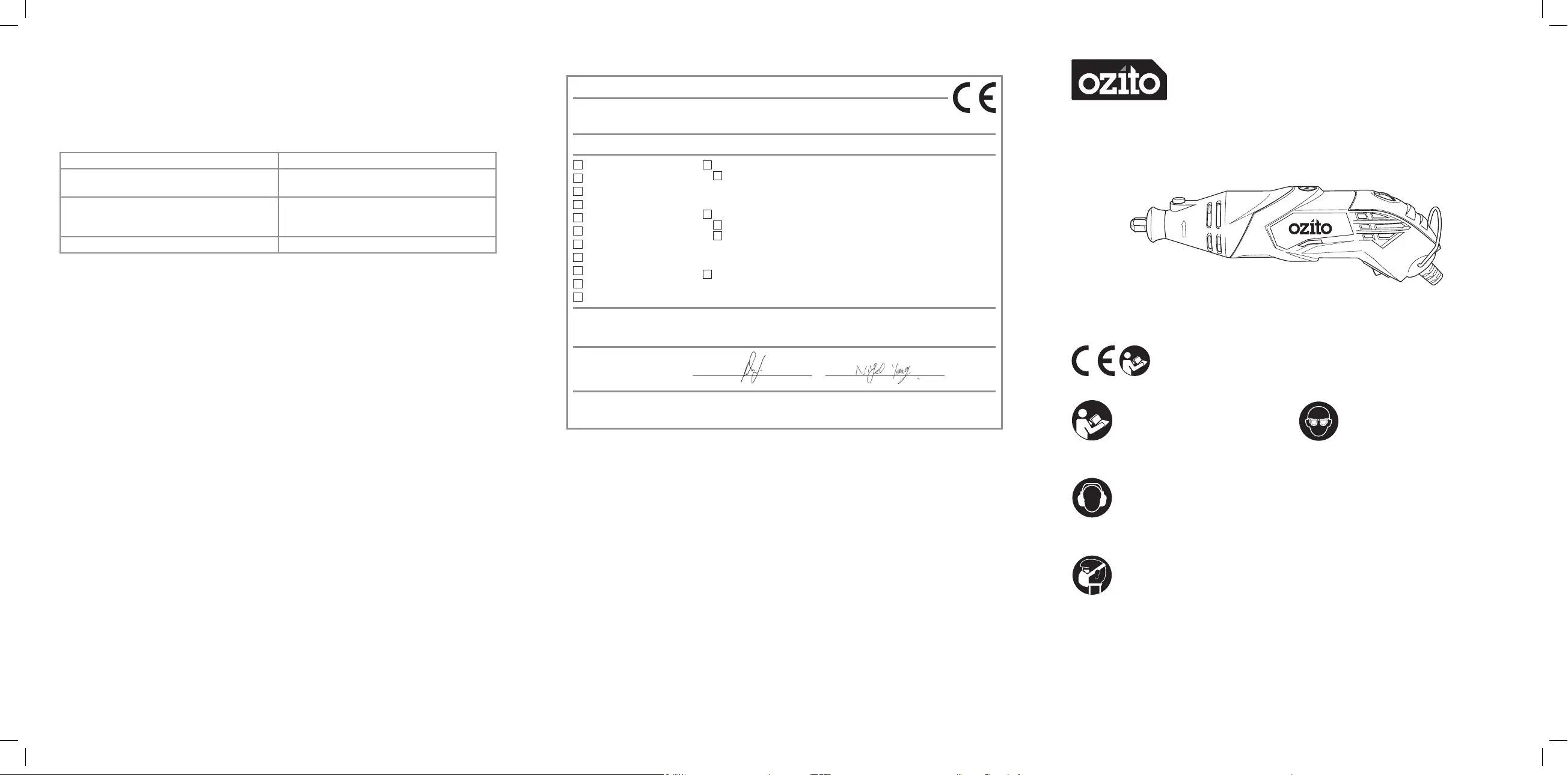 Standard references: EN 60745-1; EN 60745-2-1; EN 60745-2-23;