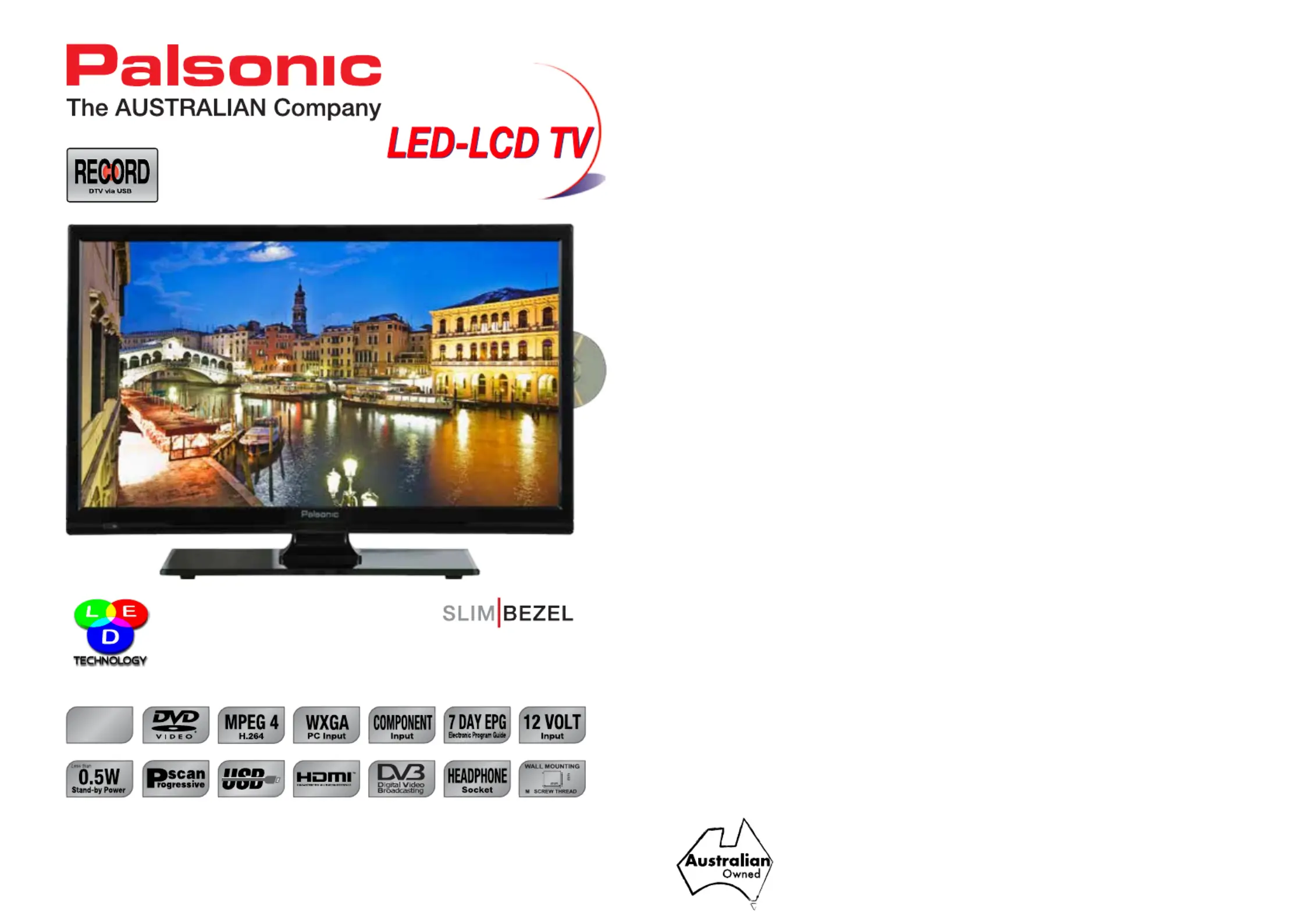 • 47cm (18.5”) Widescreen LED-LCD Television.