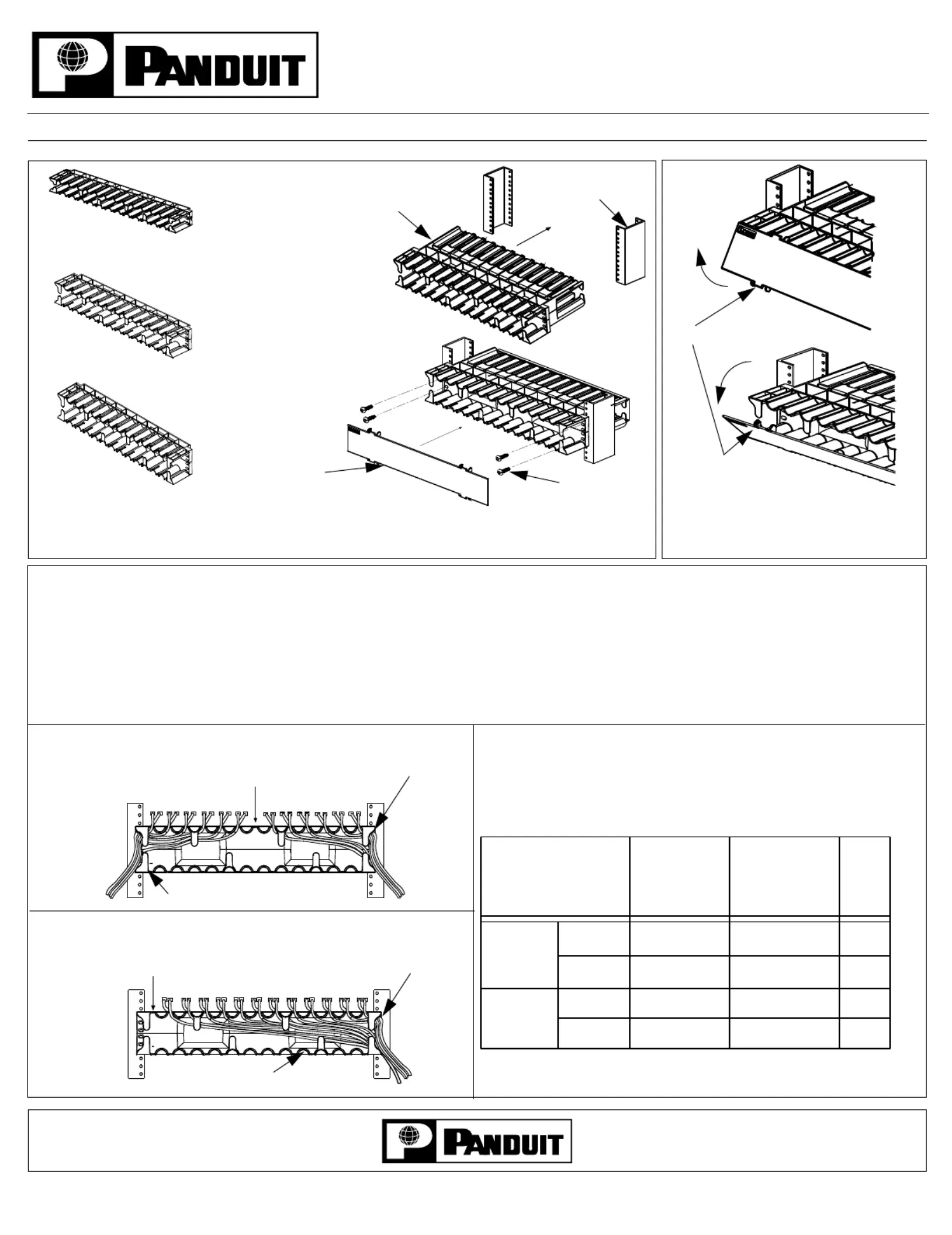 The network cable manager is recommended for use with Panduit 24 or 48 port patch panels mounted above and below the manager. When