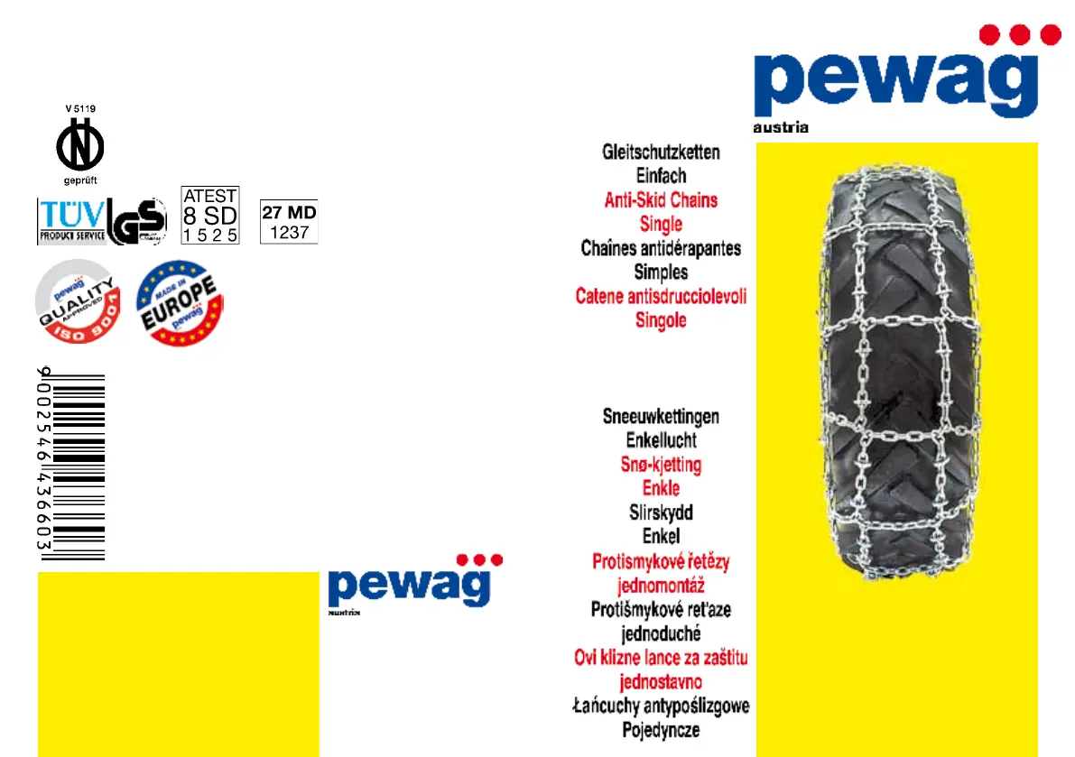 Bekijk gratis de handleiding van Pewag Traktor Doppelspur (25 pagina’s), behorend tot de categorie Sneeuwkettingen. Deze gids werd als nuttig beoordeeld door 8 mensen en kreeg gemiddeld 4.5 sterren uit 4 reviews. Heb je een vraag over Pewag Traktor Doppelspur of wil je andere gebruikers van dit product iets vragen? Stel een vraag