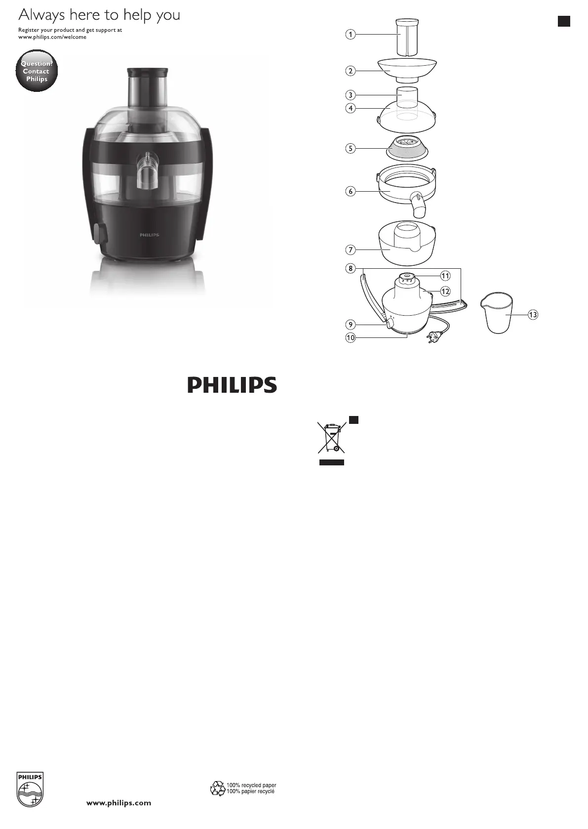 Bekijk gratis de handleiding van Philips Viva Collection HR1832 (13 pagina’s), behorend tot de categorie Sapcentrifuge. Deze gids werd als nuttig beoordeeld door 93 mensen en kreeg gemiddeld 4.5 sterren uit 2 reviews. Heb je een vraag over Philips Viva Collection HR1832 of wil je andere gebruikers van dit product iets vragen? Stel een vraag