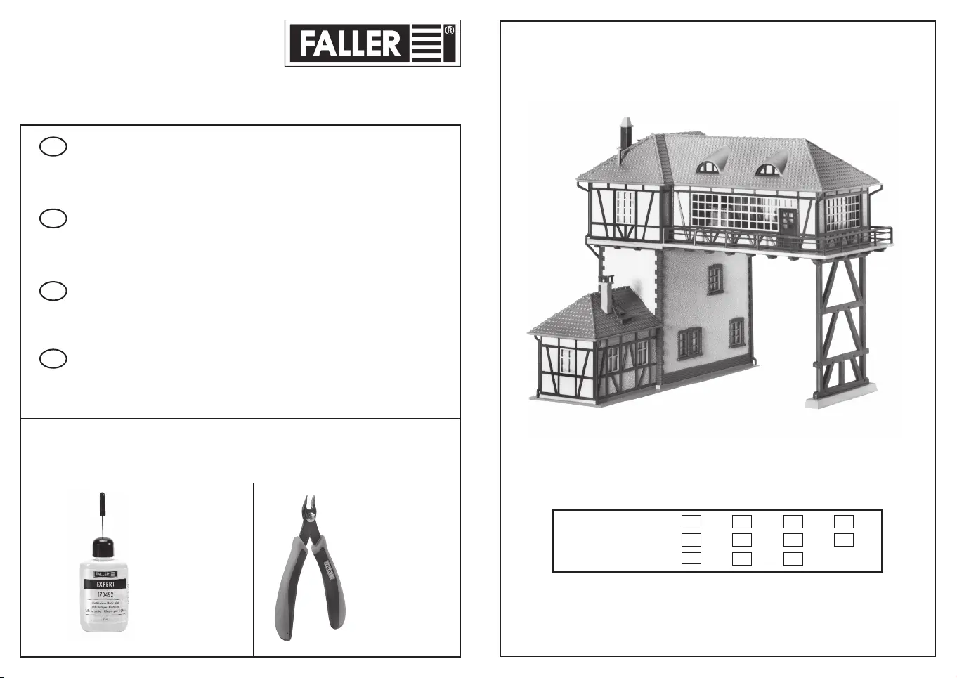Pour l’assemblage du modèle, nous vous recommandons les articles FALLER suivants (non inclus dans le kit):