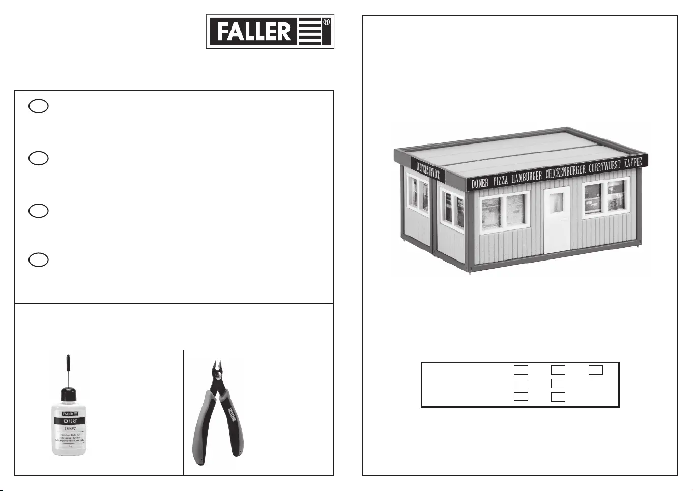 Pour l’assemblage du modèle, nous vous recommandons les articles FALLER suivants (non inclus dans le kit):
