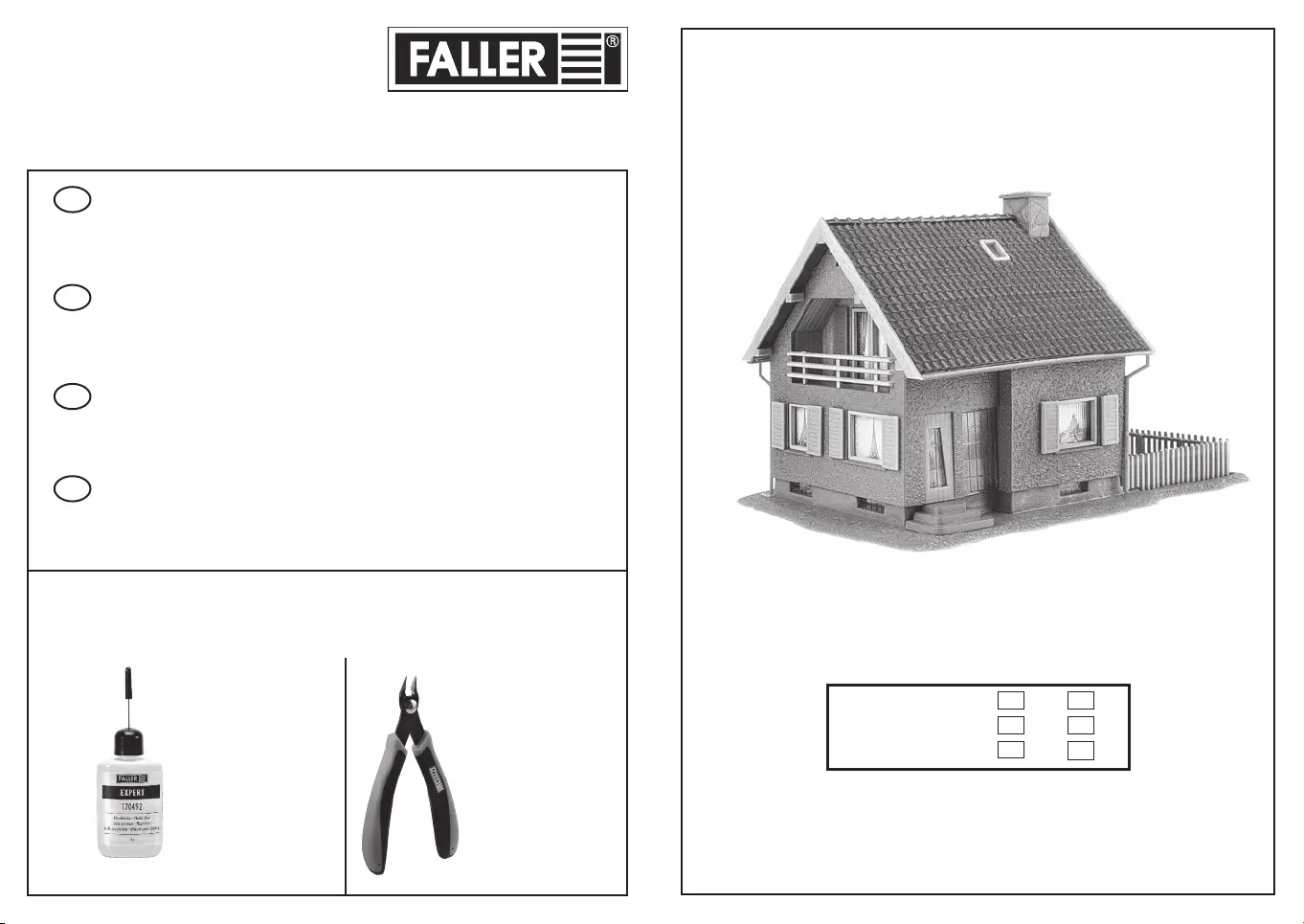Pour l’assemblage du modèle, nous vous recommandons les articles FALLER suivants (non inclus dans le kit):
