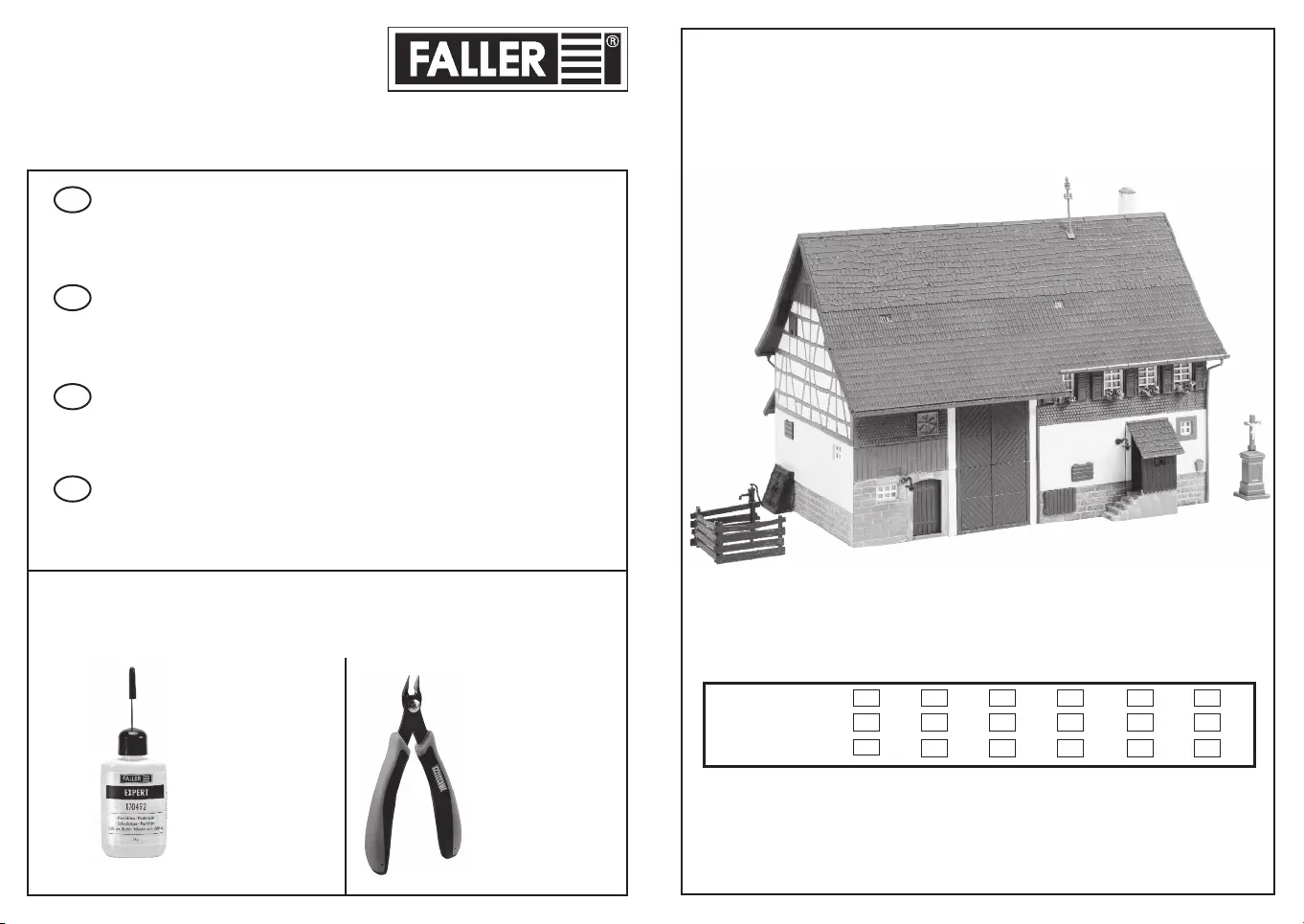 Pour l’assemblage du modèle, nous vous recommandons les articles FALLER suivants (non inclus dans le kit):