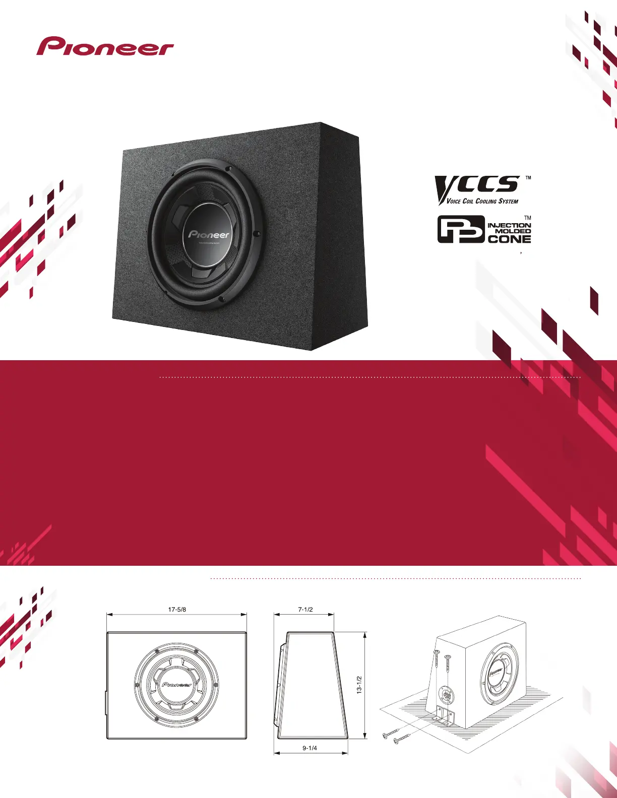 • Voice Coil Cooling System (VCCS) utilizes the subwoofer motor structure as a heat sink to lower the operating