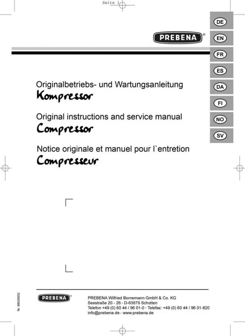 Bekijk gratis de handleiding van Prebena VIGON 120 (104 pagina’s), behorend tot de categorie Compressor. Deze gids werd als nuttig beoordeeld door 12 mensen en kreeg gemiddeld 4.8 sterren uit 2 reviews. Heb je een vraag over Prebena VIGON 120 of wil je andere gebruikers van dit product iets vragen? Stel een vraag