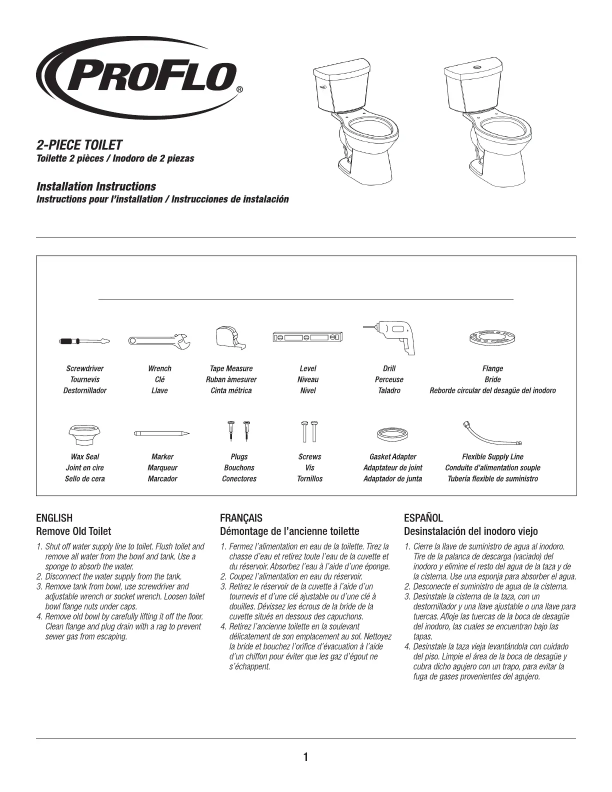 Bekijk gratis de handleiding van ProFlo PF3703WH (6 pagina’s), behorend tot de categorie Toilet. Deze gids werd als nuttig beoordeeld door 6 mensen en kreeg gemiddeld 4.2 sterren uit 2 reviews. Heb je een vraag over ProFlo PF3703WH of wil je andere gebruikers van dit product iets vragen? Stel een vraag