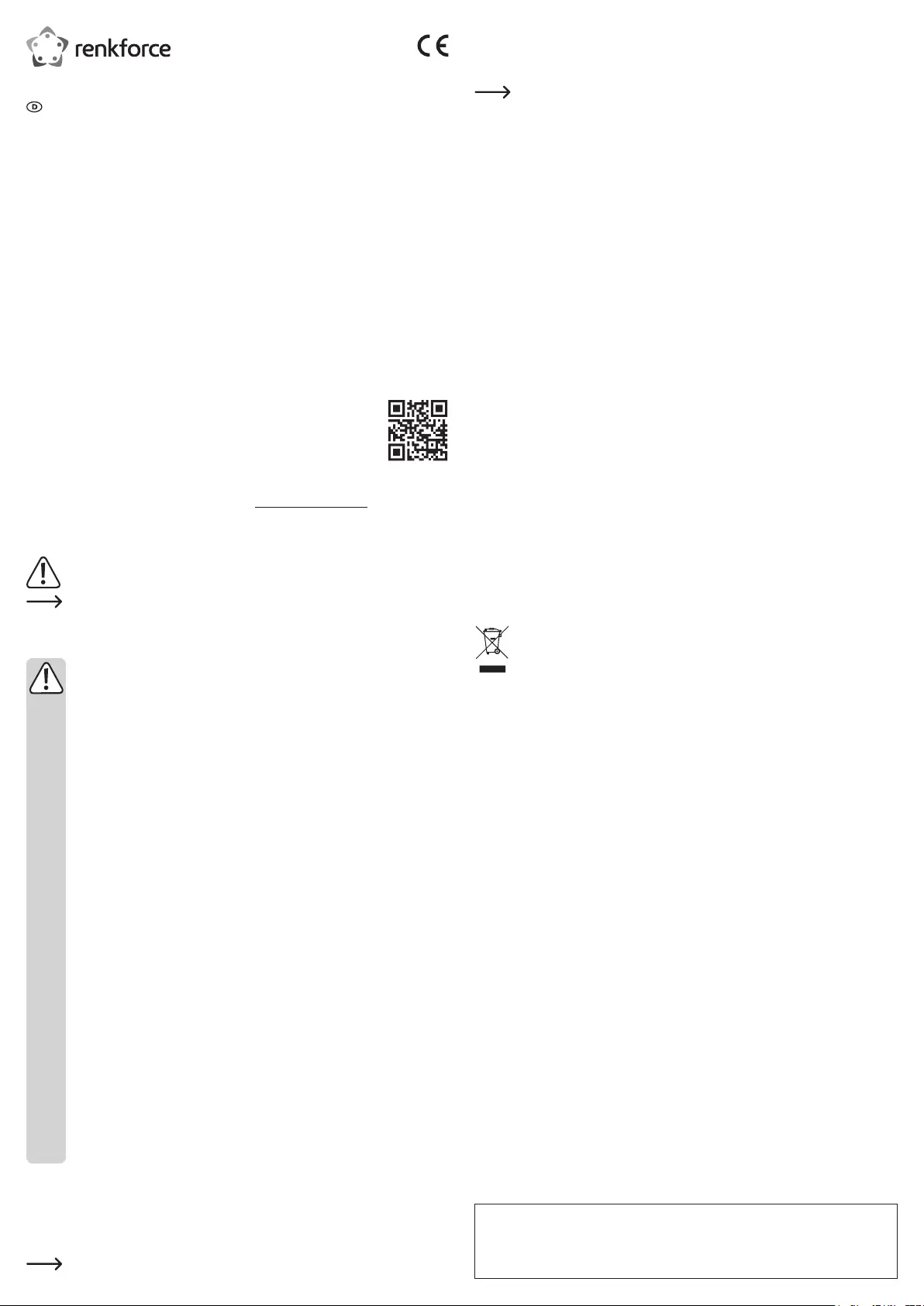 Laden Sie aktuelle Bedienungsanleitungen über den Link www.conrad.com/downloads herunter oder scan-