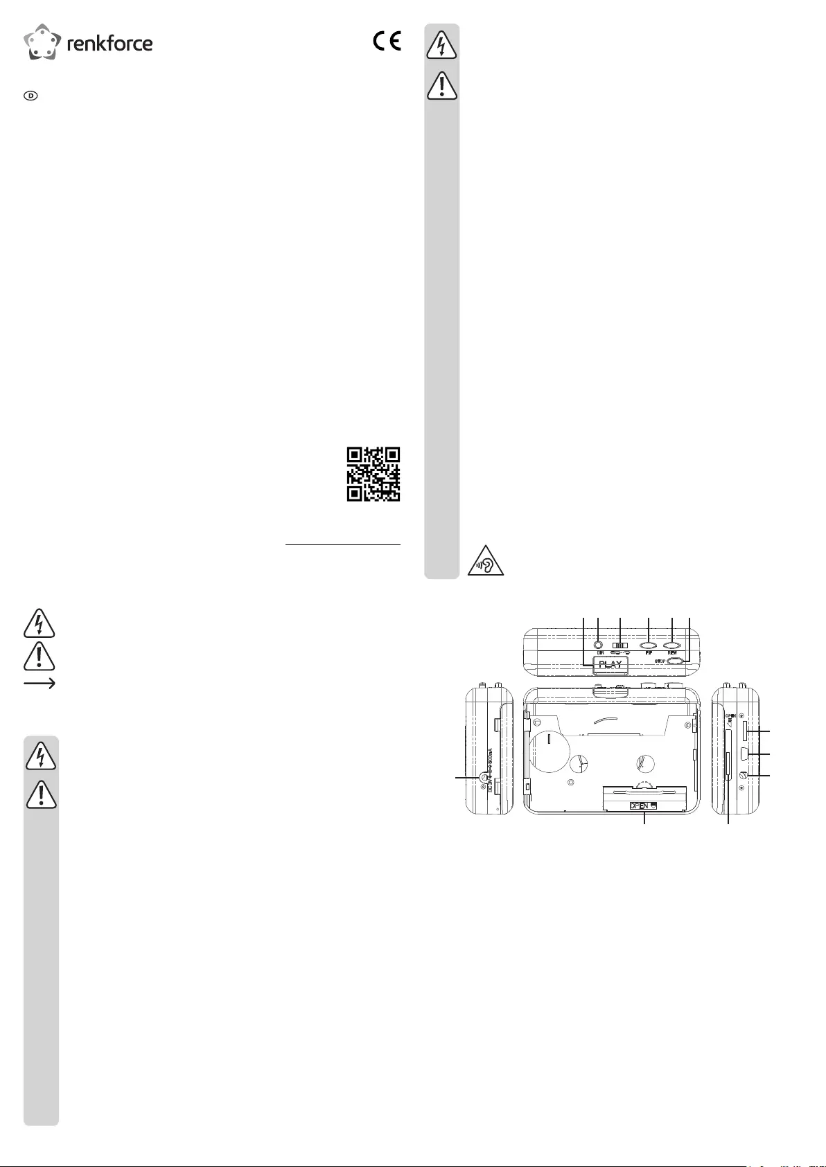 Bekijk gratis de handleiding van Renkforce RF-CP-170 (8 pagina’s), behorend tot de categorie Cassettespeler. Deze gids werd als nuttig beoordeeld door 15 mensen en kreeg gemiddeld 4.6 sterren uit 4 reviews. Heb je een vraag over Renkforce RF-CP-170 of wil je andere gebruikers van dit product iets vragen? Stel een vraag