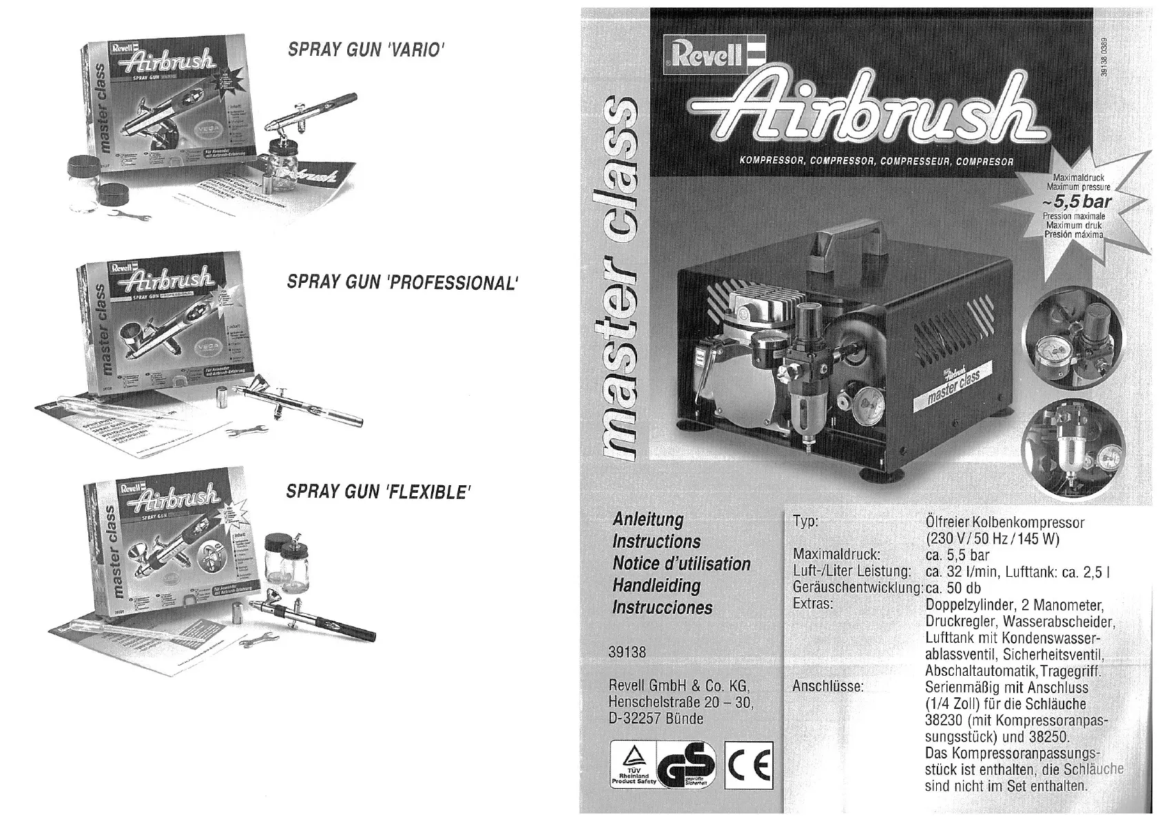 Bekijk gratis de handleiding van Revell Master Class 39138 (8 pagina’s), behorend tot de categorie Compressor. Deze gids werd als nuttig beoordeeld door 10 mensen en kreeg gemiddeld 4.0 sterren uit 5 reviews. Heb je een vraag over Revell Master Class 39138 of wil je andere gebruikers van dit product iets vragen? Stel een vraag