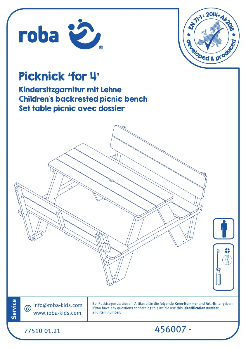 Bekijk gratis de handleiding van Roba PICKNICK FOR 4 (8 pagina’s), behorend tot de categorie Táblázat. Deze gids werd als nuttig beoordeeld door 4 mensen en kreeg gemiddeld 4.7 sterren uit 9 reviews. Heb je een vraag over Roba PICKNICK FOR 4 of wil je andere gebruikers van dit product iets vragen? Stel een vraag