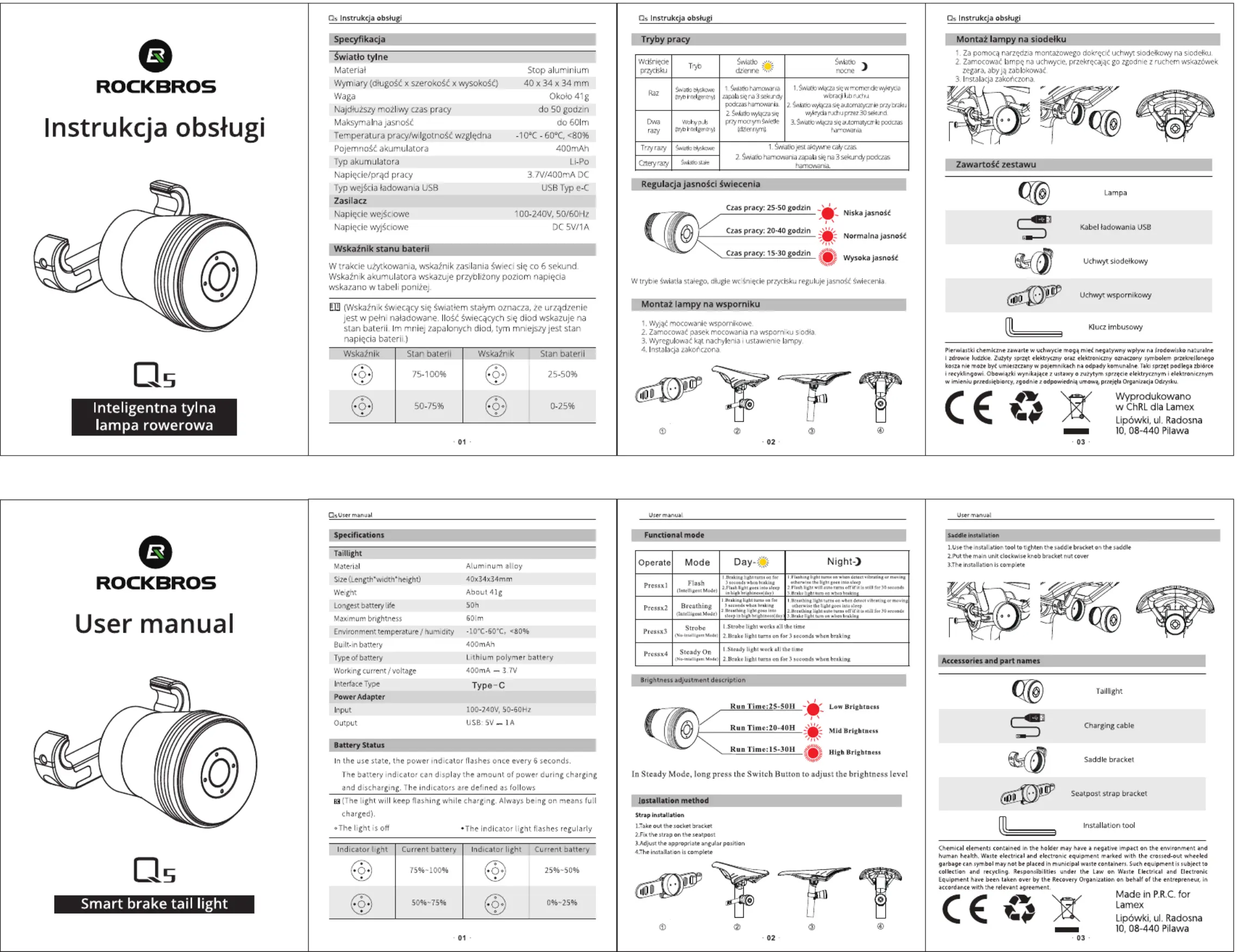 Handleiding Fietslamp Rockbros