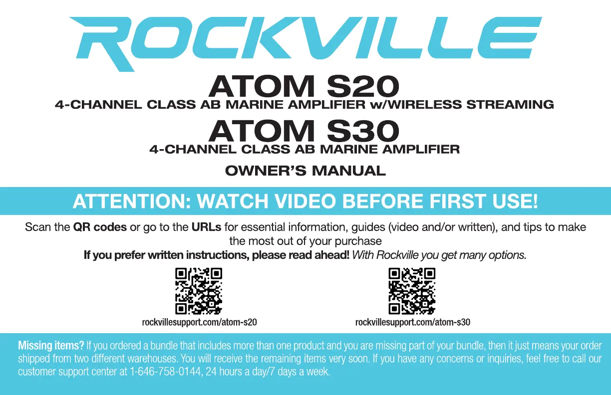 Bekijk gratis de handleiding van Rockville ATOM S30 (28 pagina’s), behorend tot de categorie Receiver. Deze gids werd als nuttig beoordeeld door 3 mensen en kreeg gemiddeld 5.0 sterren uit 3 reviews. Heb je een vraag over Rockville ATOM S30 of wil je andere gebruikers van dit product iets vragen? Stel een vraag
