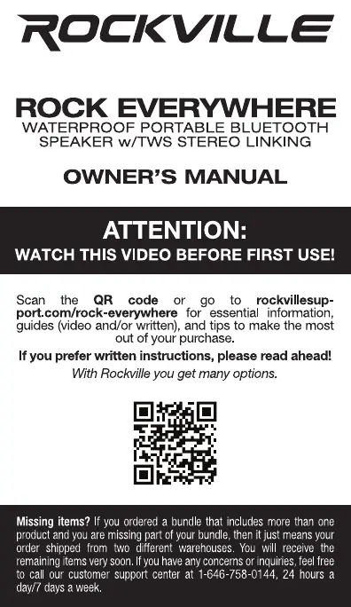 Bekijk gratis de handleiding van Rockville ROCK EVERYWHERE (10 pagina’s), behorend tot de categorie Speaker. Deze gids werd als nuttig beoordeeld door 2 mensen en kreeg gemiddeld 4.9 sterren uit 9 reviews. Heb je een vraag over Rockville ROCK EVERYWHERE of wil je andere gebruikers van dit product iets vragen? Stel een vraag