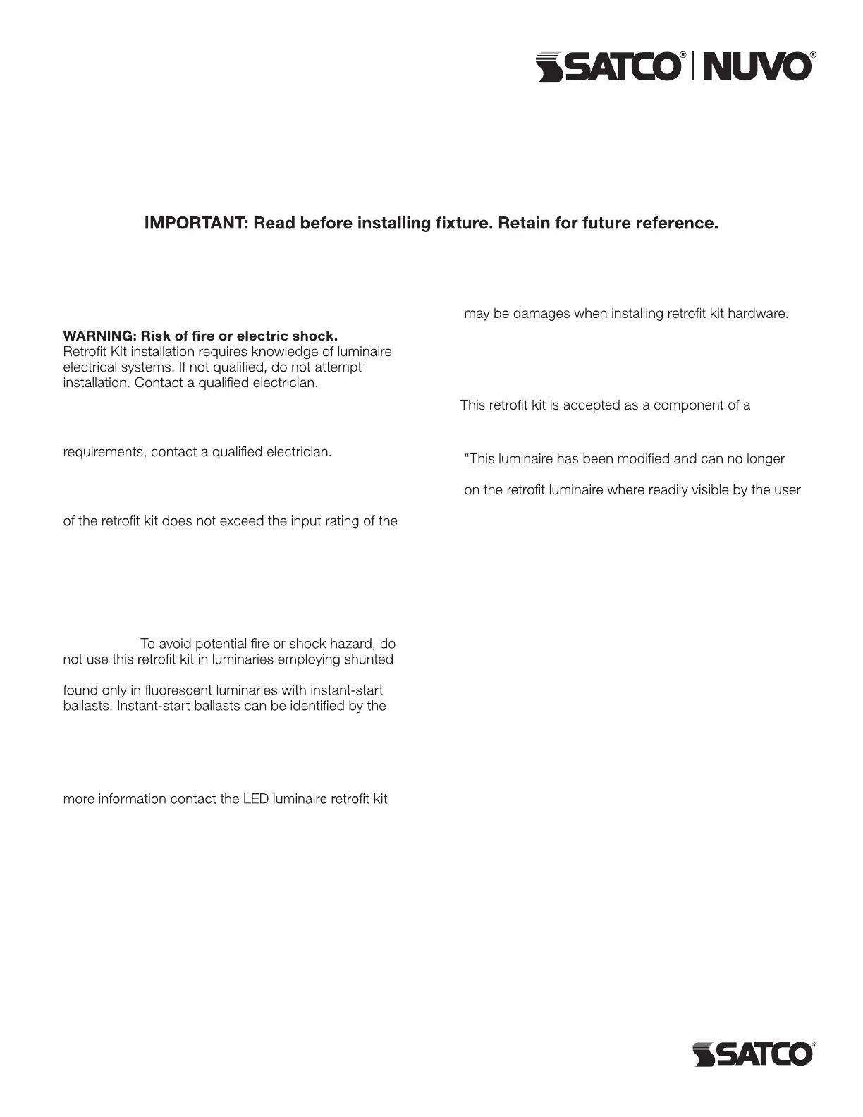 • WARNING: Install this kit only in luminaries that have