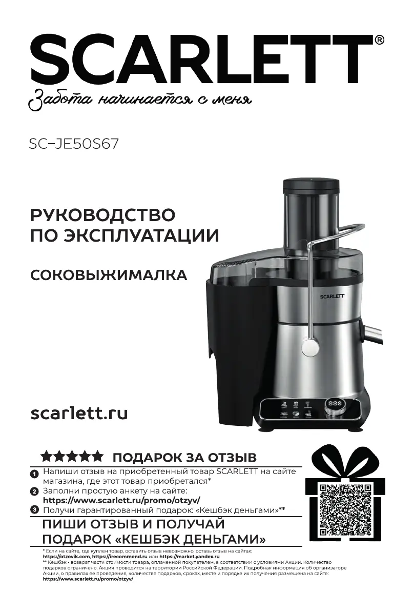 Bekijk gratis de handleiding van Scarlett SC-JE50S67 (12 pagina’s), behorend tot de categorie Sapcentrifuge. Deze gids werd als nuttig beoordeeld door 2 mensen en kreeg gemiddeld 5.0 sterren uit 7 reviews. Heb je een vraag over Scarlett SC-JE50S67 of wil je andere gebruikers van dit product iets vragen? Stel een vraag