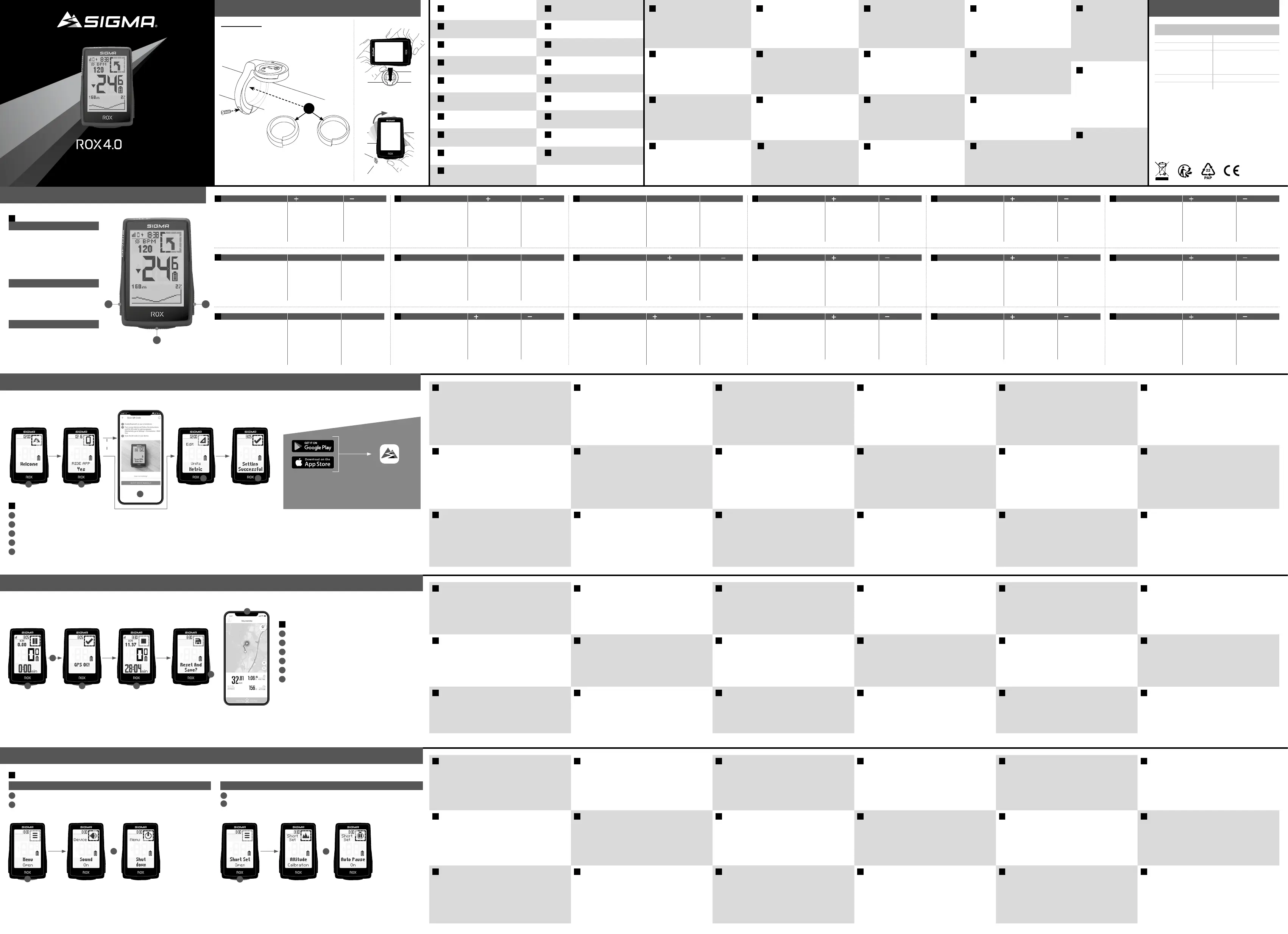 Bekijk gratis de handleiding van Sigma ROX 4.0 SE (2 pagina’s), behorend tot de categorie Fietscomputer. Deze gids werd als nuttig beoordeeld door 21 mensen en kreeg gemiddeld 4.6 sterren uit 3 reviews. Heb je een vraag over Sigma ROX 4.0 SE of wil je andere gebruikers van dit product iets vragen? Stel een vraag