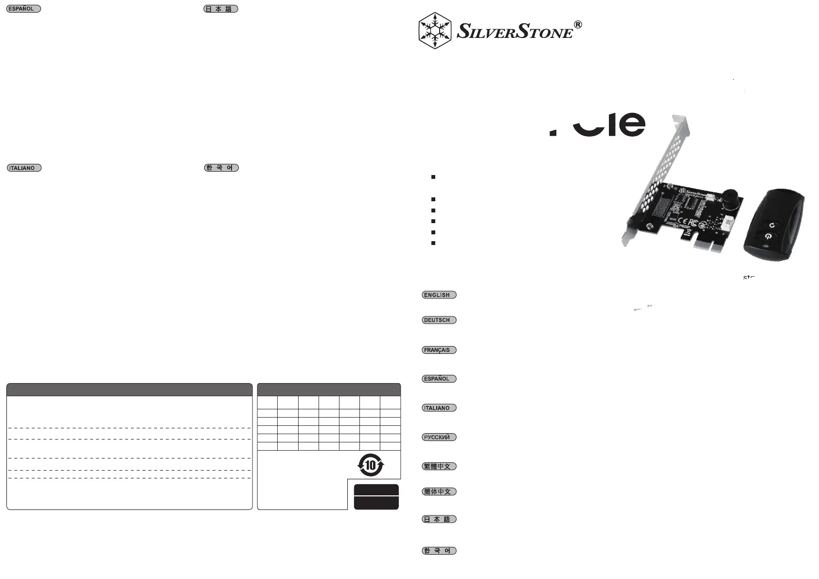 Bekijk gratis de handleiding van SilverStone ES02-PCIe (2 pagina’s), behorend tot de categorie Niet gecategoriseerd. Deze gids werd als nuttig beoordeeld door 6 mensen en kreeg gemiddeld 4.4 sterren uit 5 reviews. Heb je een vraag over SilverStone ES02-PCIe of wil je andere gebruikers van dit product iets vragen? Stel een vraag