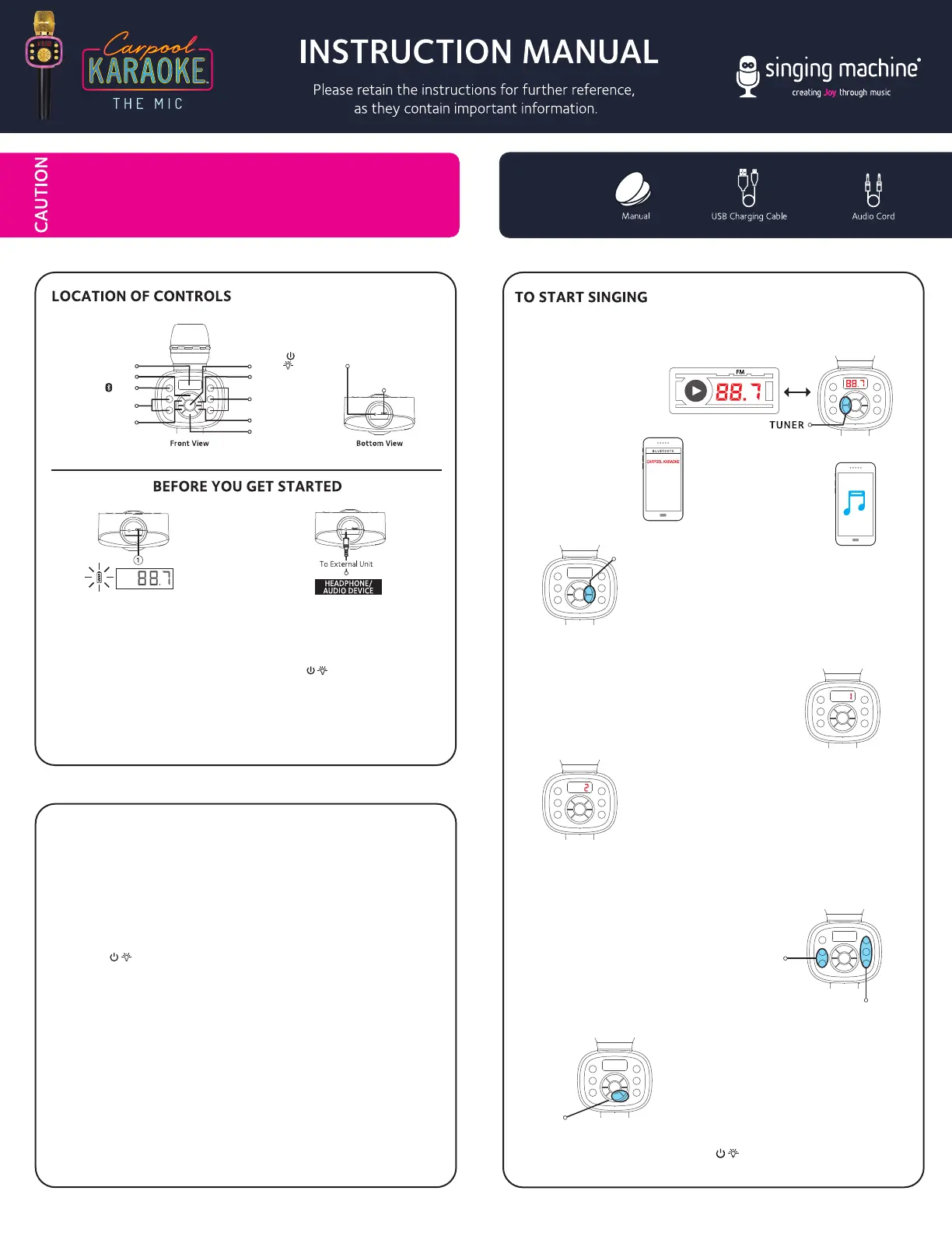 Singing Machine’s Carpool Karaoke The Mic (”the Product”) is intended solely for use by passengers.