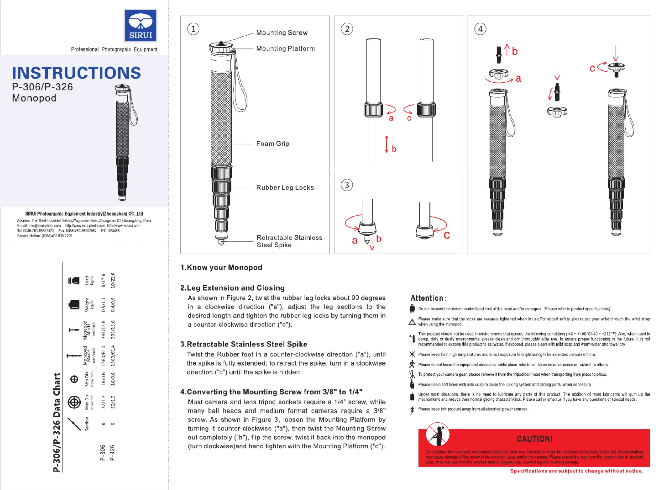 Sirui P-326 Handleiding
