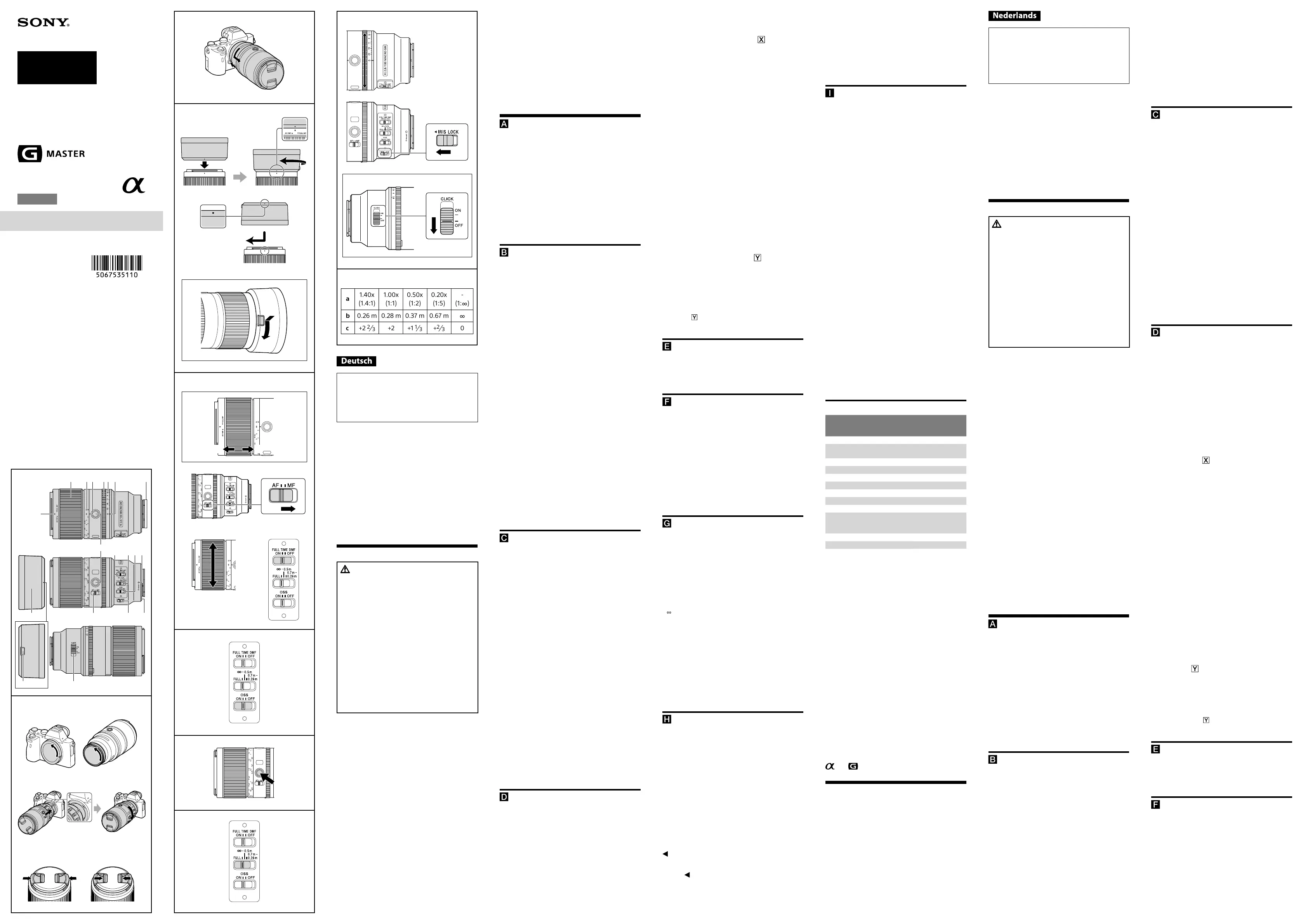 Sony FE 100mm f/2.8 Macro G Master OSS Handleiding