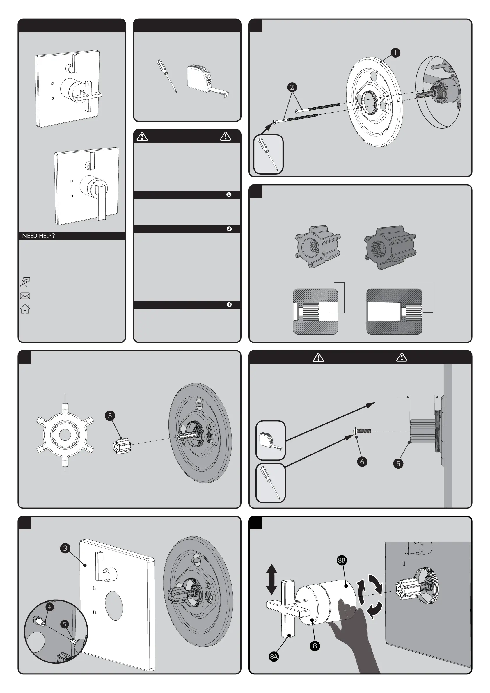 Align Handle Assembly (8) with Connector and Escutcheon. Keep Handle (8A) in a stationary