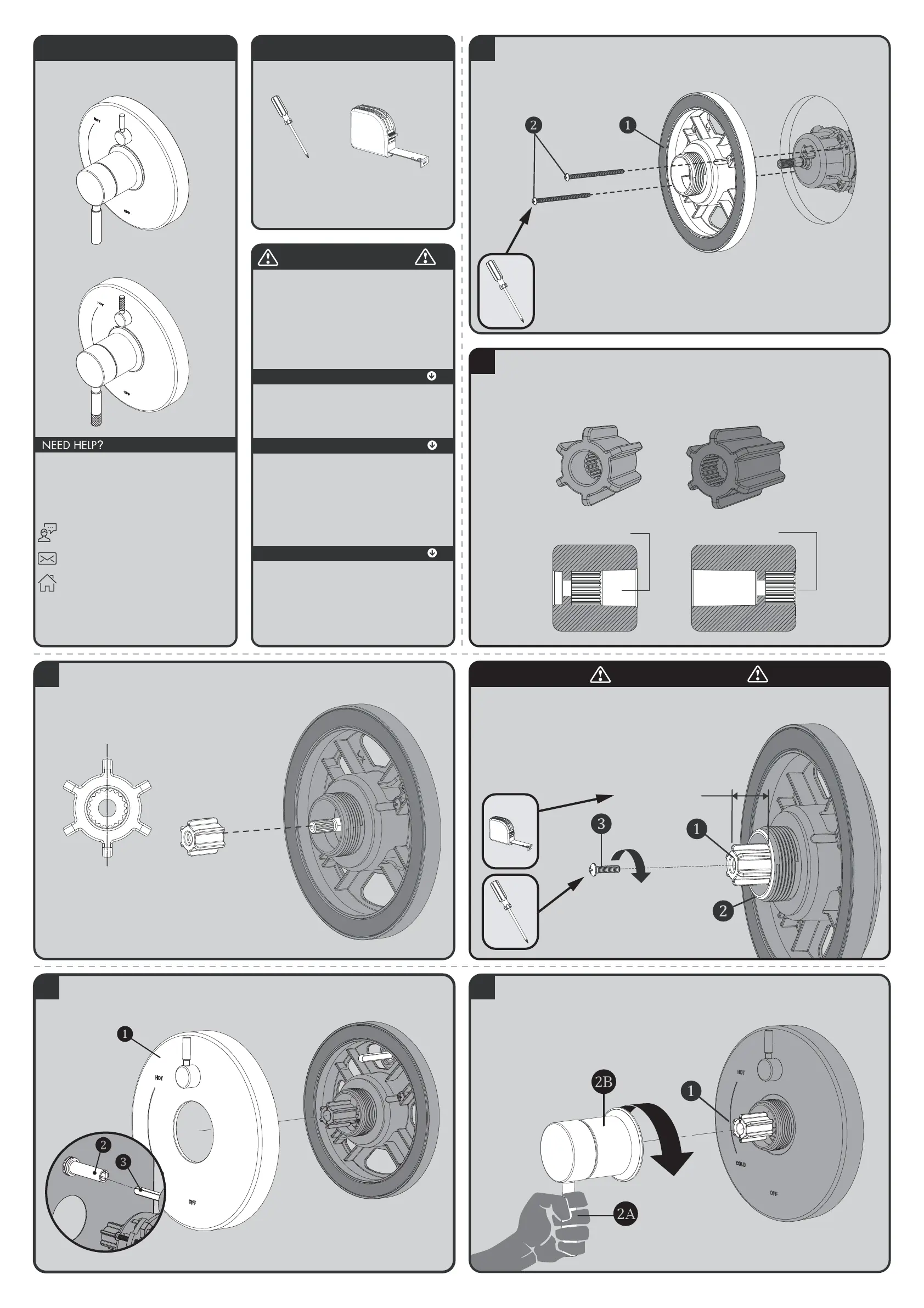 Align Handle Assembly with Connector (1) and Escutcheon as shown below. Keep Handle (2A) in a