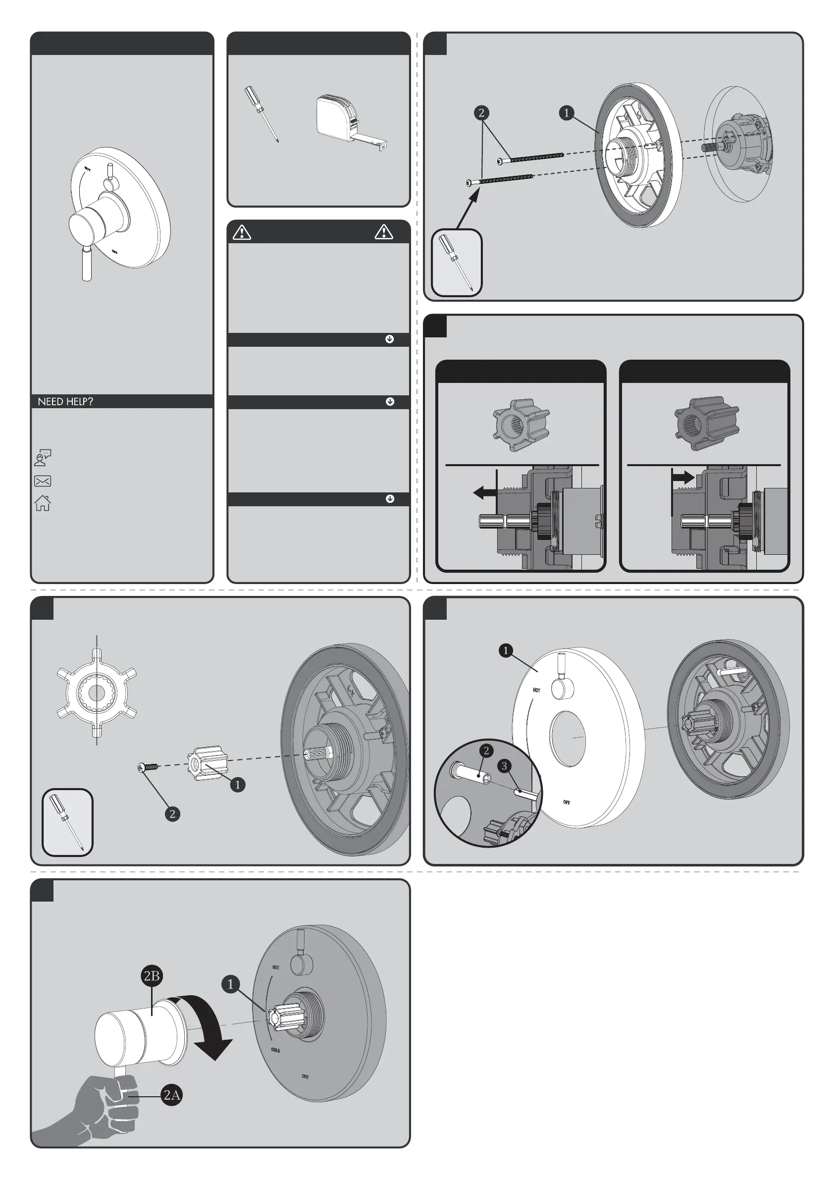 Align Handle Assembly with Connector (1) and Escutcheon as shown below. Keep Handle (2A) in a