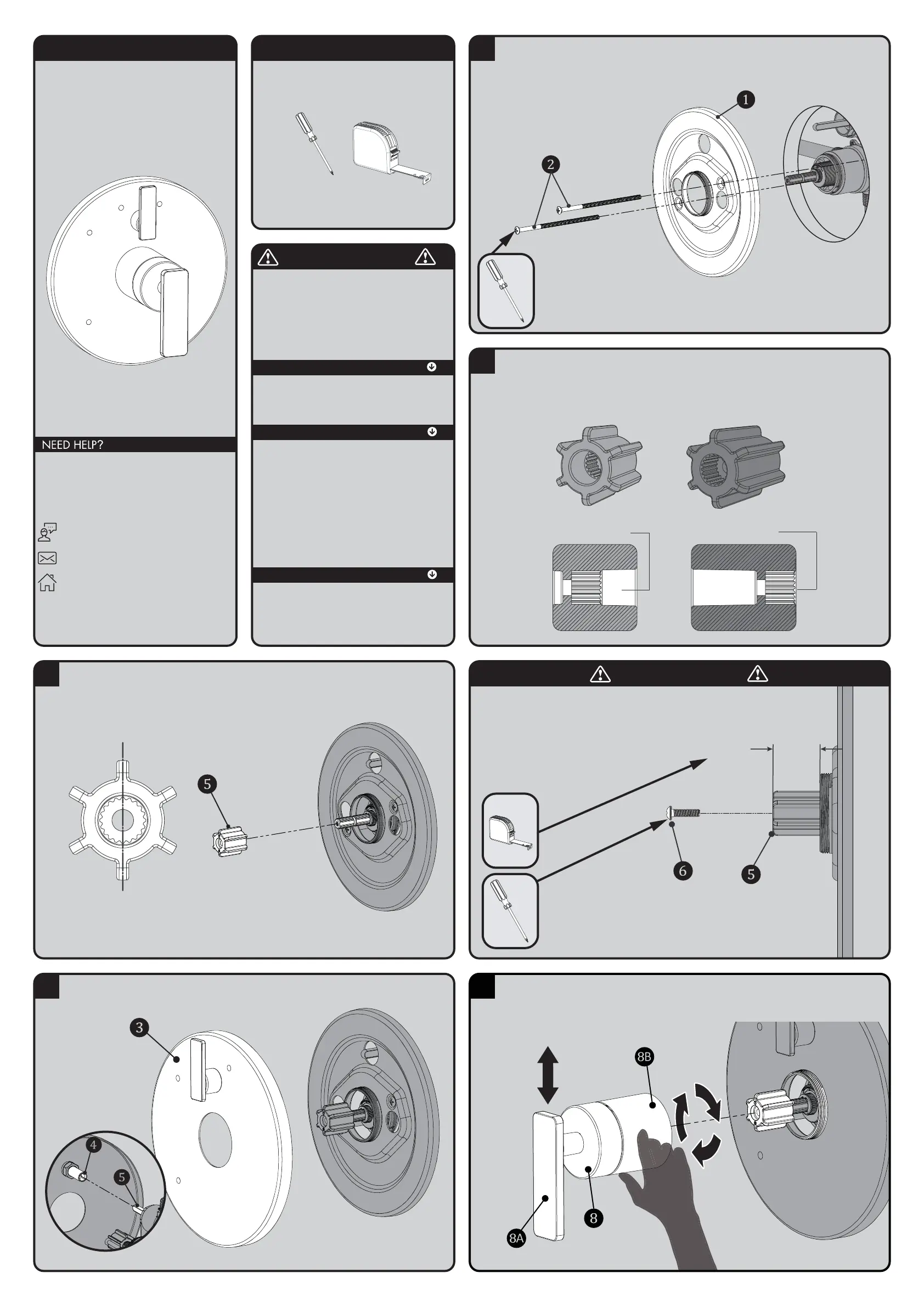 Align Handle Assembly (8) with Connector and Escutcheon. Keep Handle (8A) in a stationary