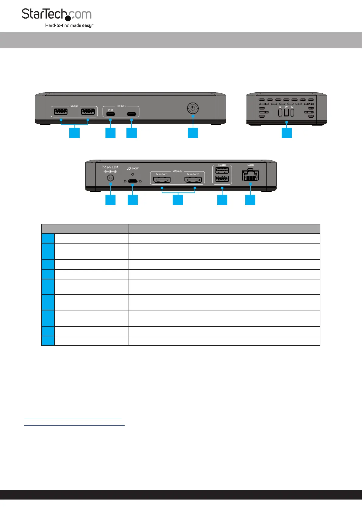 4Power Button• Press and release to toggle Power on or o for the Docking Station
