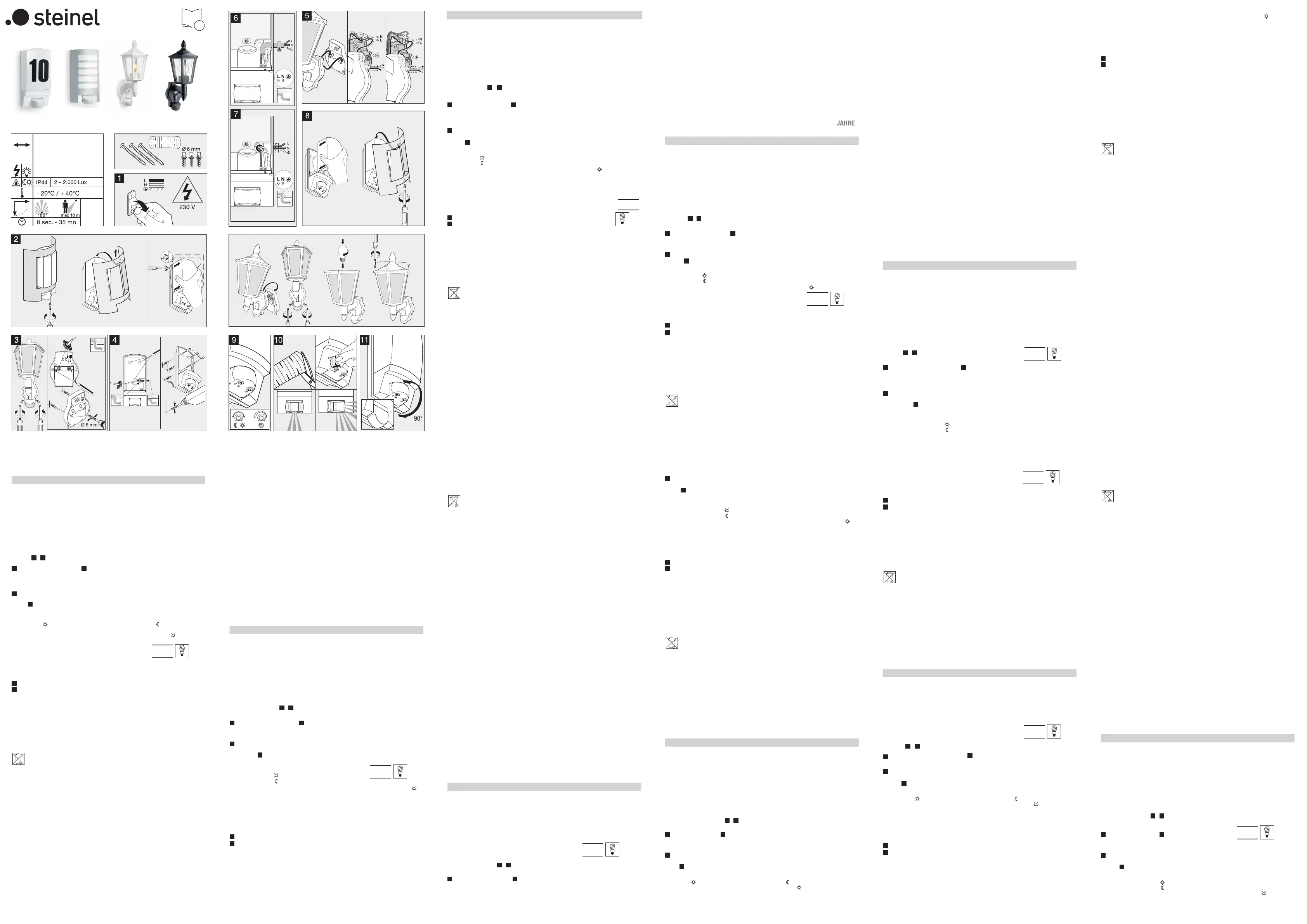 - wenn Anbau- und Installation nicht gemäß den Installationsvorschriften von STEINEL ausgeführt wurden,
