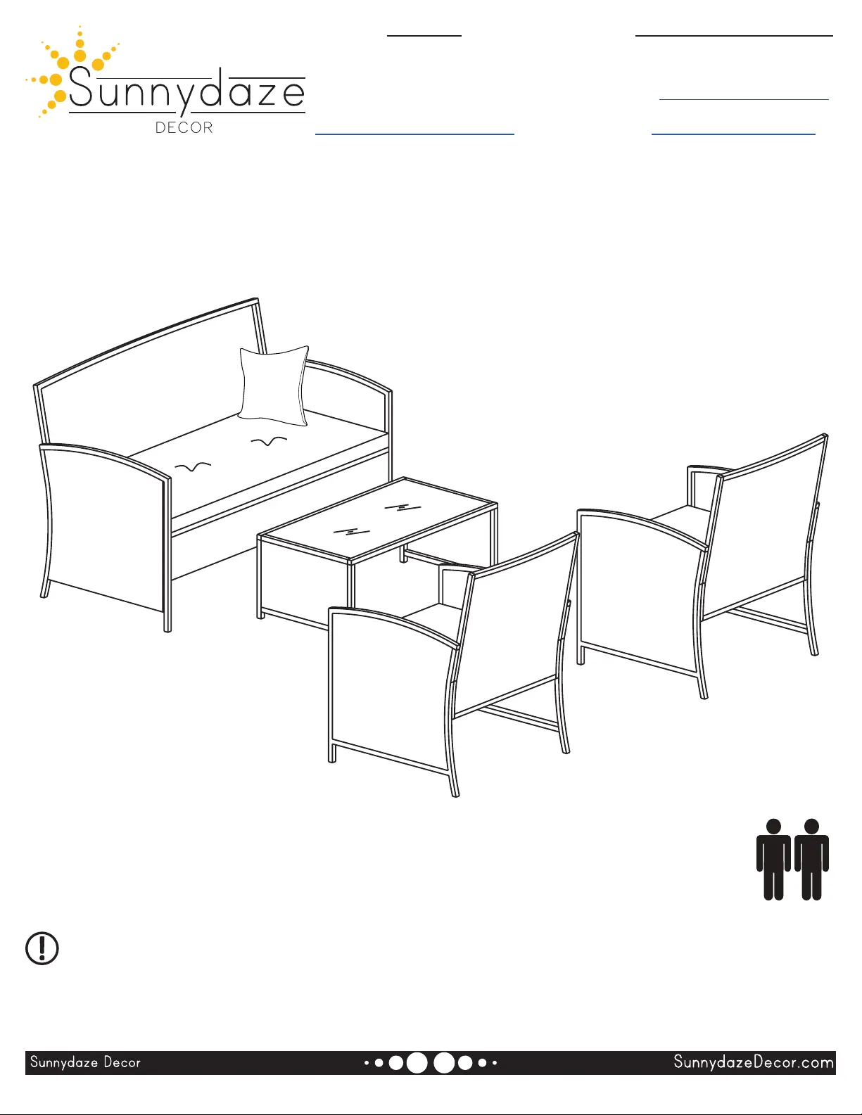 Sunnydaze Decor advises reading this manual fully, and assembling the furniture set soon after purchase.