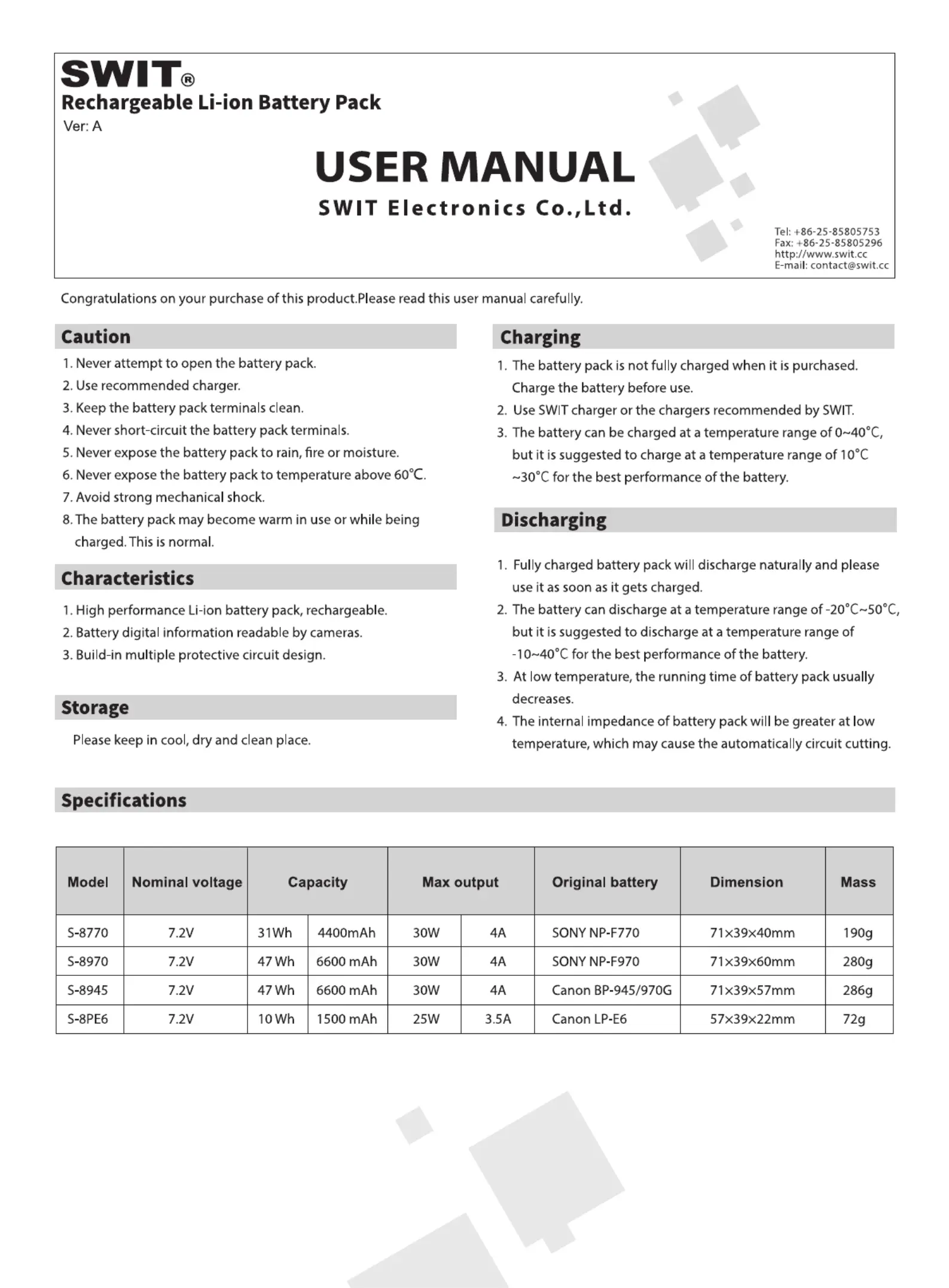 Bekijk gratis de handleiding van SWIT S-8970 (1 pagina’s), behorend tot de categorie Accu's camera. Deze gids werd als nuttig beoordeeld door 28 mensen en kreeg gemiddeld 5.0 sterren uit 2 reviews. Heb je een vraag over SWIT S-8970 of wil je andere gebruikers van dit product iets vragen? Stel een vraag