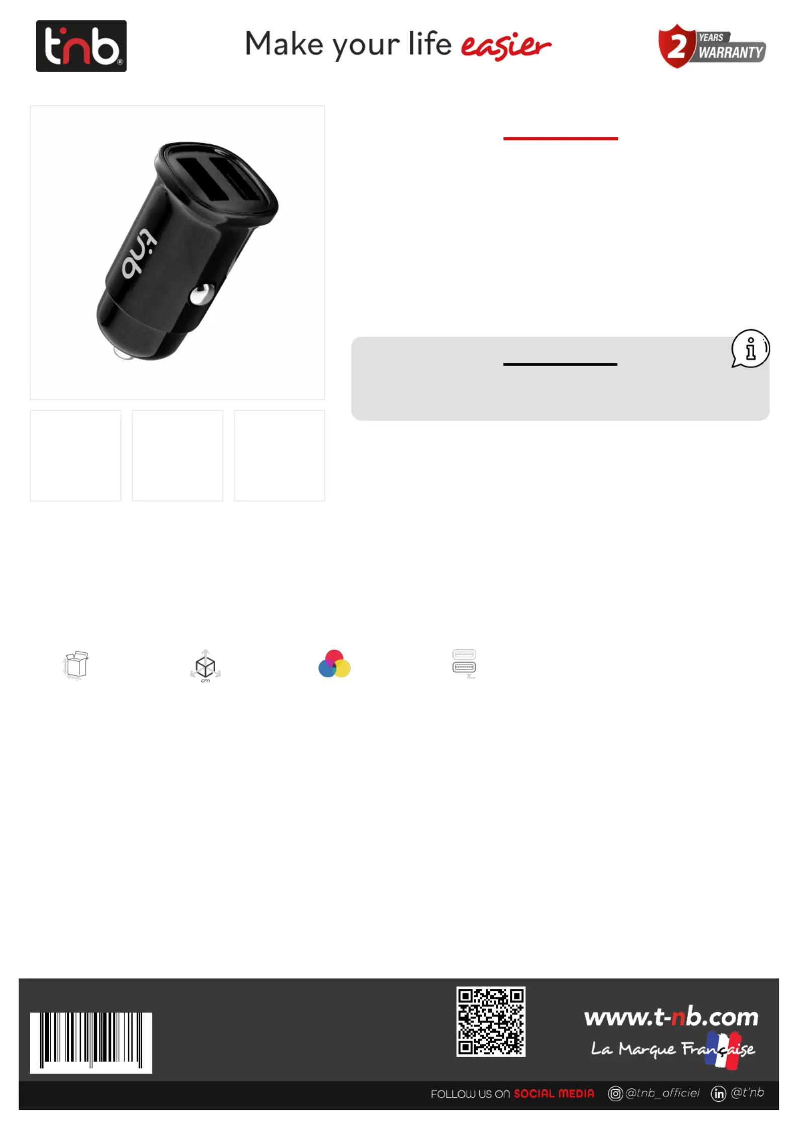 Thanks to its 2 USB ports, this car charger will deliver current up to 2.4 amperes (if