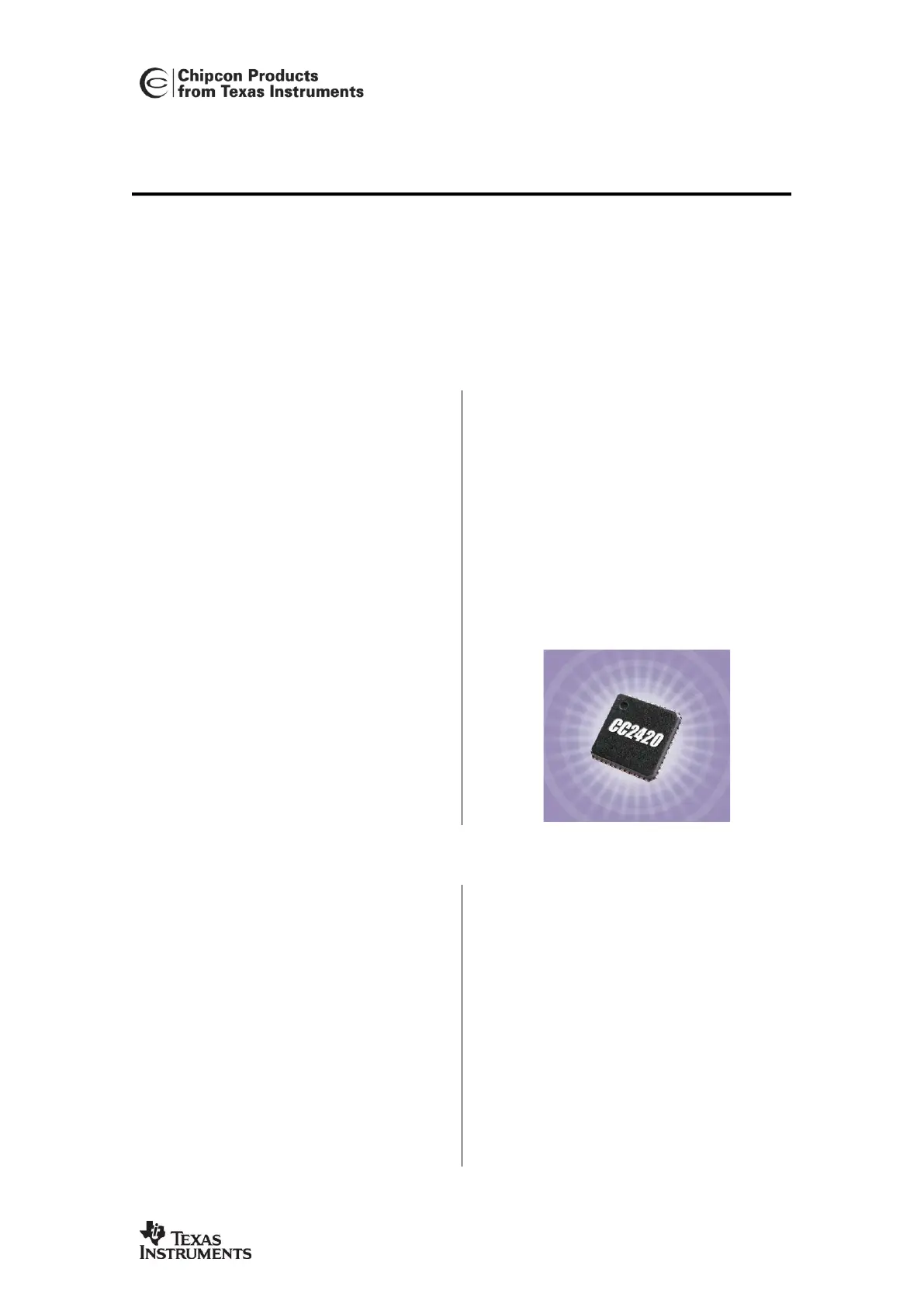 Bekijk gratis de handleiding van Texas Instruments CC2420 (93 pagina’s), behorend tot de categorie Niet gecategoriseerd. Deze gids werd als nuttig beoordeeld door 2 mensen en kreeg gemiddeld 4.1 sterren uit 3 reviews. Heb je een vraag over Texas Instruments CC2420 of wil je andere gebruikers van dit product iets vragen? Stel een vraag