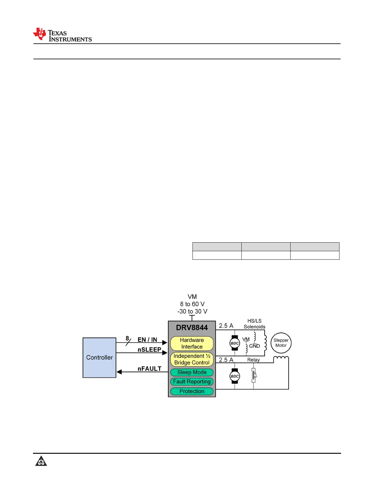 The DRV8844 can supply up to 2.5A peak or 1.75A