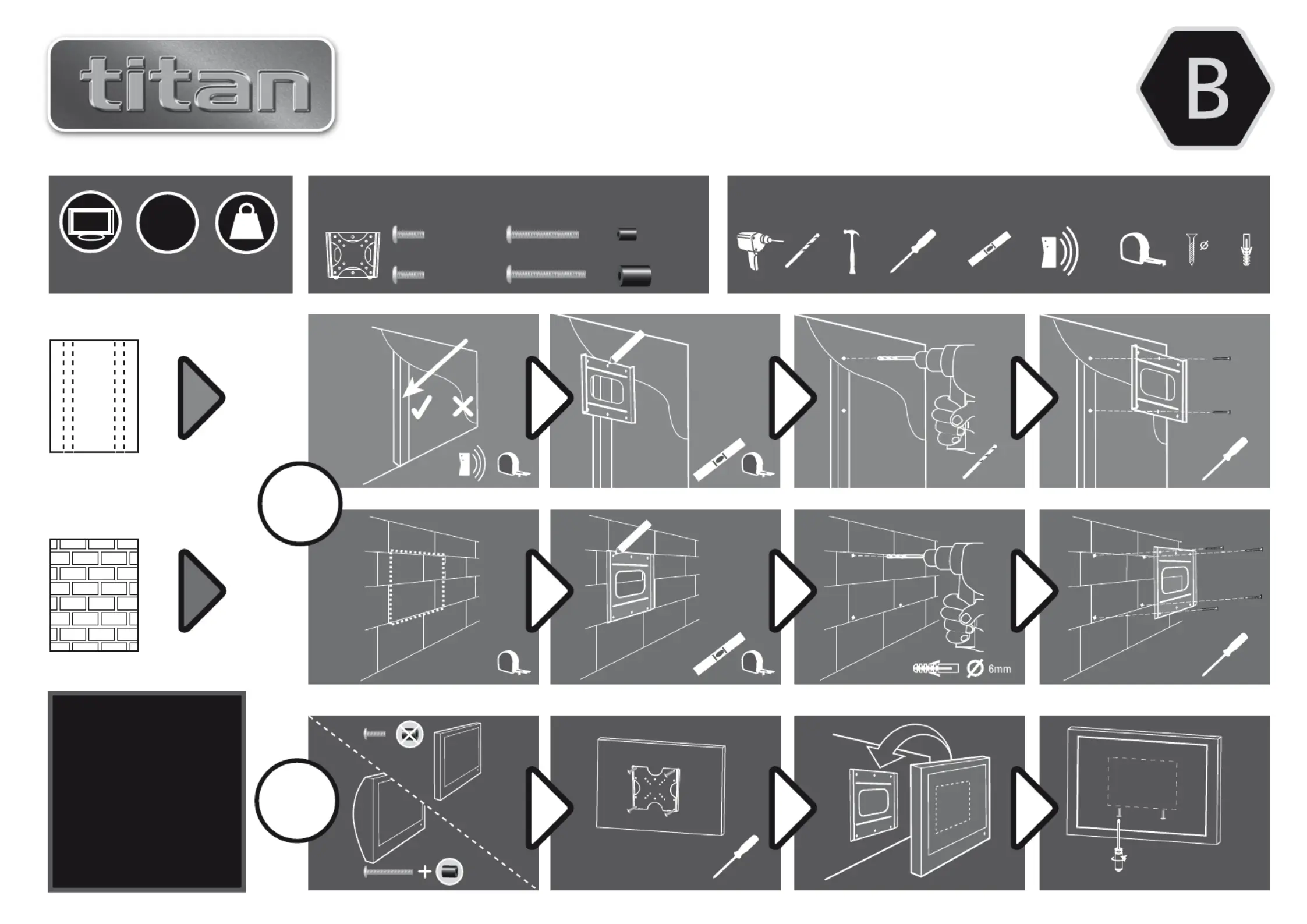 Bekijk gratis de handleiding van Titan MF 3210 (1 pagina’s), behorend tot de categorie Wandsteun. Deze gids werd als nuttig beoordeeld door 8 mensen en kreeg gemiddeld 4.9 sterren uit 8 reviews. Heb je een vraag over Titan MF 3210 of wil je andere gebruikers van dit product iets vragen? Stel een vraag
