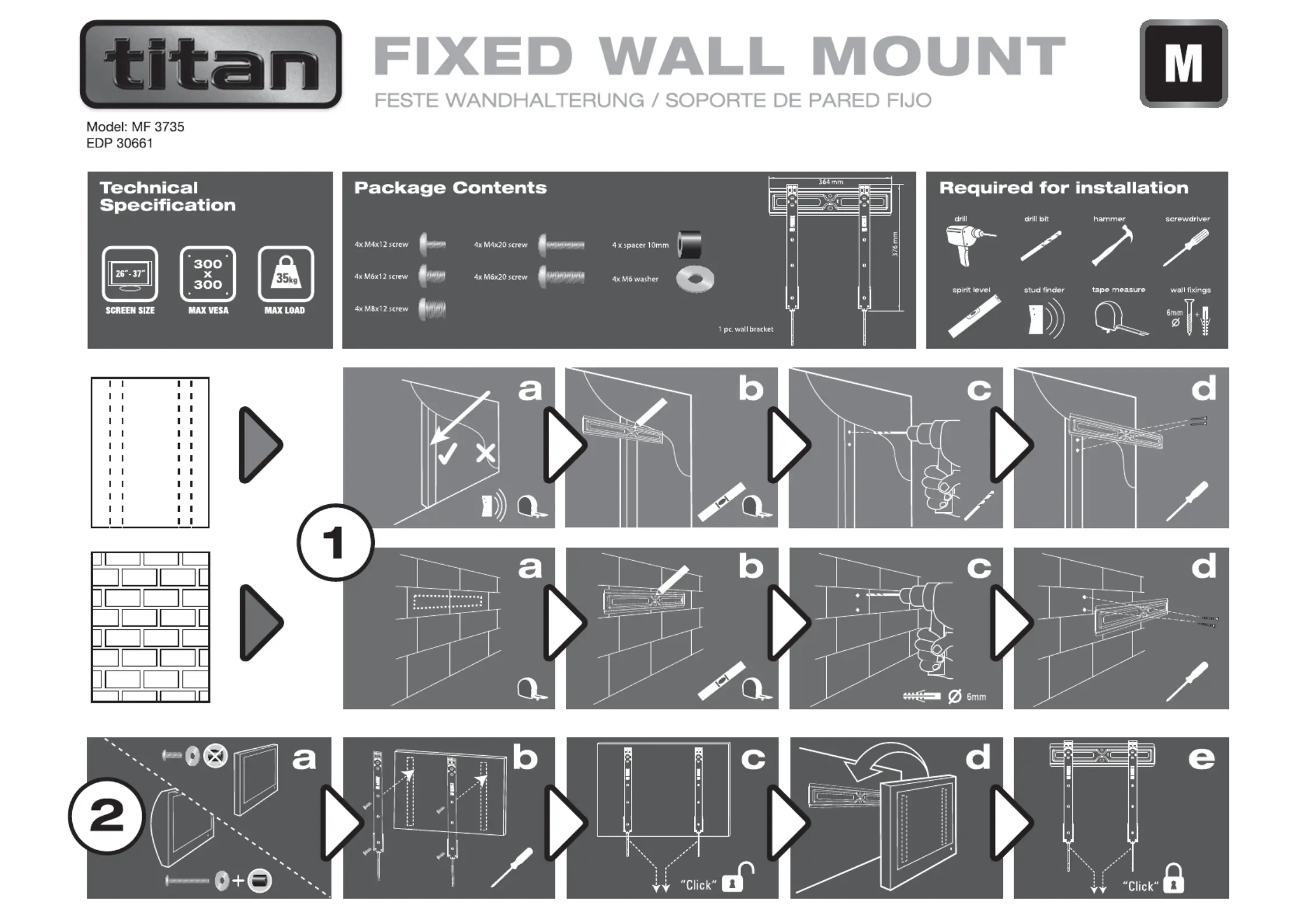 Bekijk gratis de handleiding van Titan MF 3735 (1 pagina’s), behorend tot de categorie Wandsteun. Deze gids werd als nuttig beoordeeld door 18 mensen en kreeg gemiddeld 4.7 sterren uit 2 reviews. Heb je een vraag over Titan MF 3735 of wil je andere gebruikers van dit product iets vragen? Stel een vraag