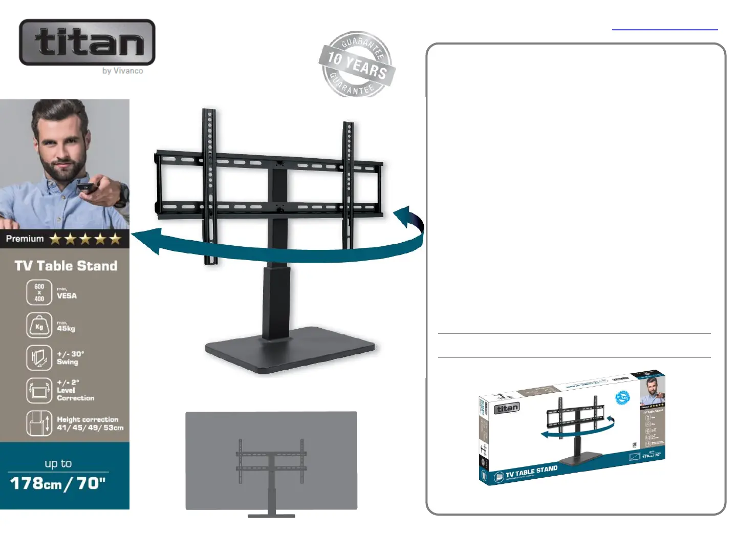 TITAN TV table stand for screen sizes up to