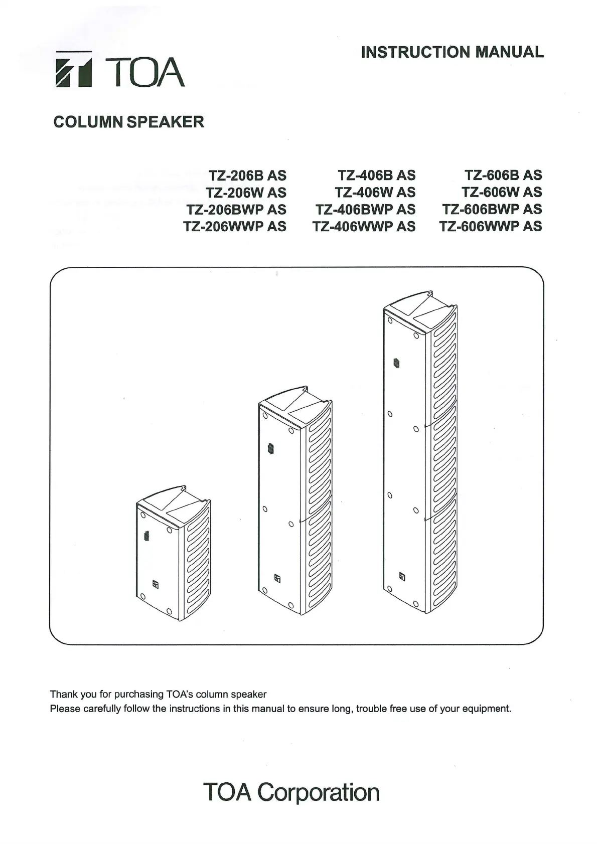 Thank you for purchasing TOAs column speaker