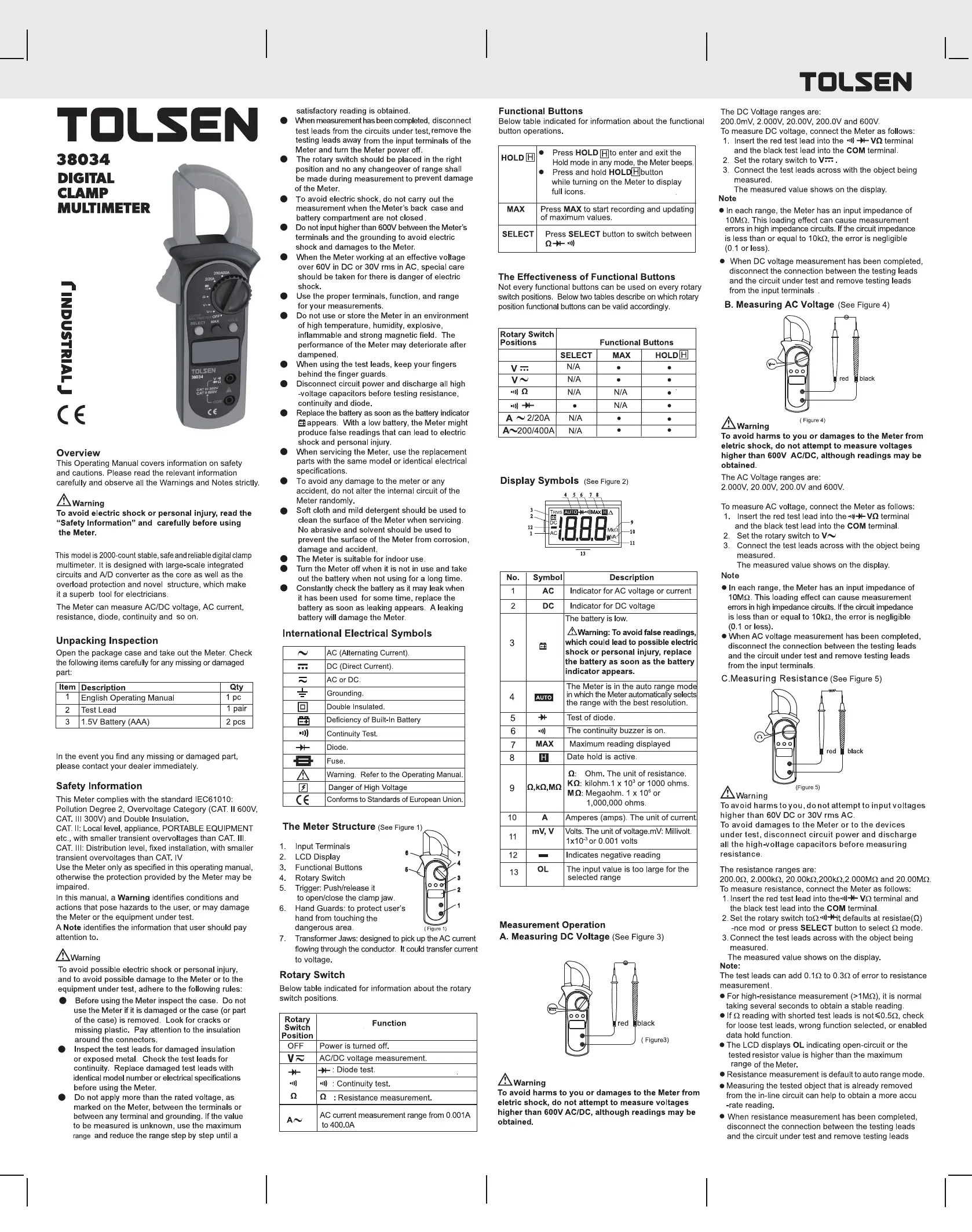 Bekijk gratis de handleiding van Tolsen 38034 (2 pagina’s), behorend tot de categorie Multimeter. Deze gids werd als nuttig beoordeeld door 2 mensen en kreeg gemiddeld 5.0 sterren uit 2 reviews. Heb je een vraag over Tolsen 38034 of wil je andere gebruikers van dit product iets vragen? Stel een vraag