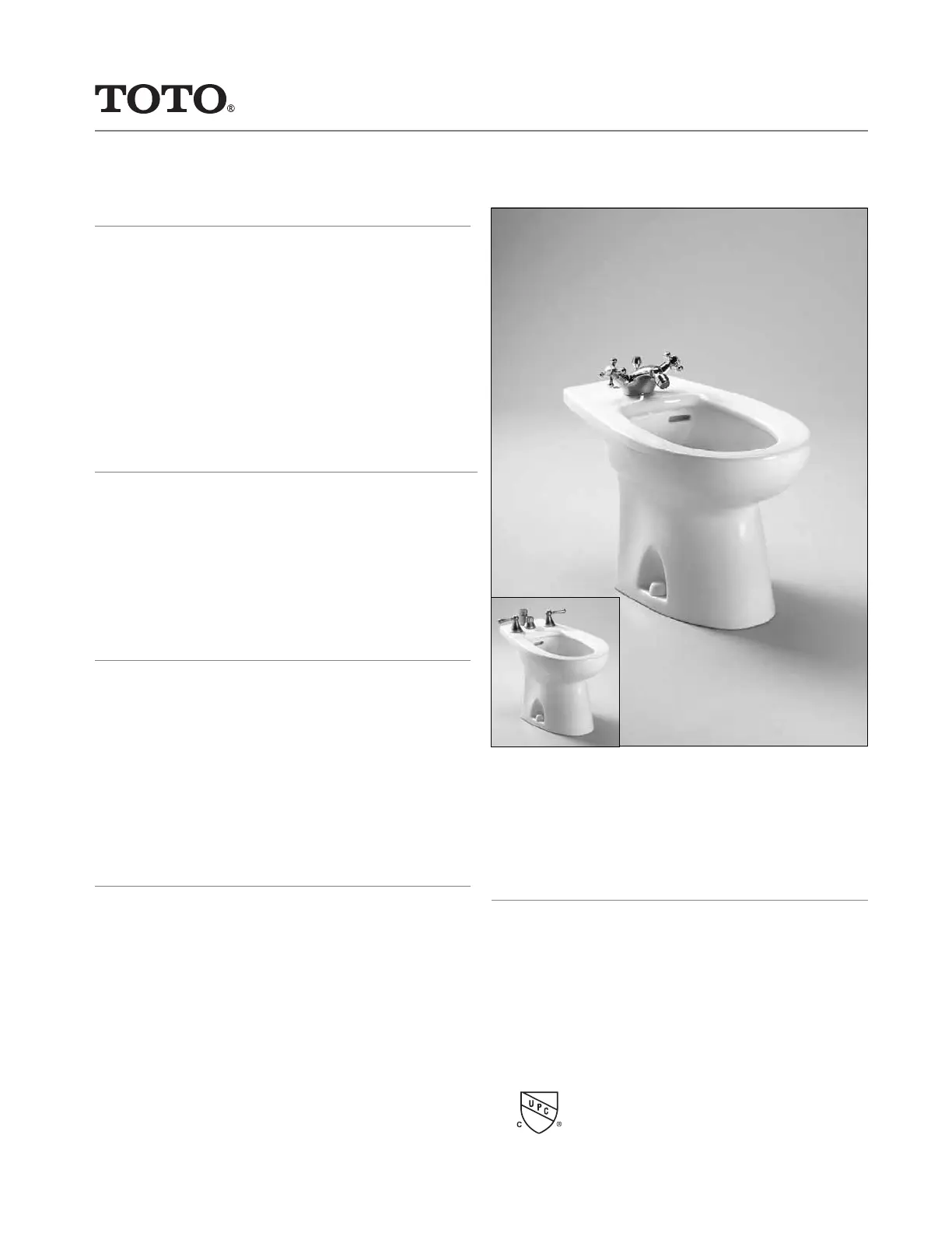 the fl oor rough-in. Bidet shall be single-hole TOTO