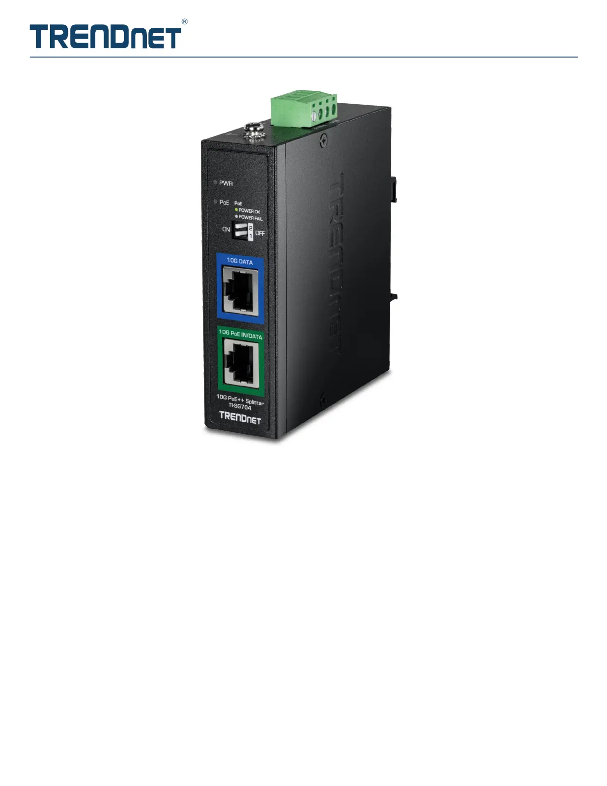 TRENDnet’s Industrial 10G PoE++ Splitter, model TI-SG704, networks a non-PoE device by using a 10G PoE++ connection and