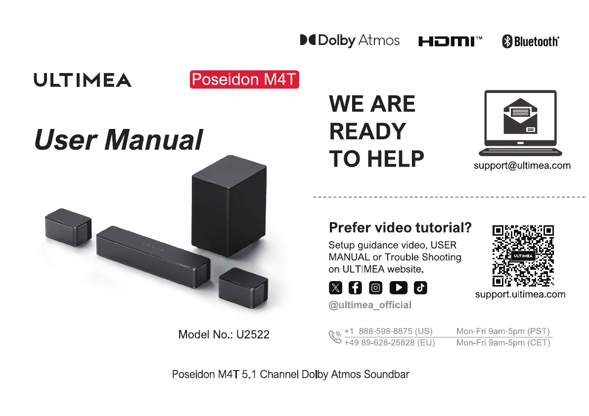 Bekijk gratis de handleiding van Ultimea Poseidon M4T (12 pagina’s), behorend tot de categorie Soundbar. Deze gids werd als nuttig beoordeeld door 8 mensen en kreeg gemiddeld 4.7 sterren uit 4 reviews. Heb je een vraag over Ultimea Poseidon M4T of wil je andere gebruikers van dit product iets vragen? Stel een vraag