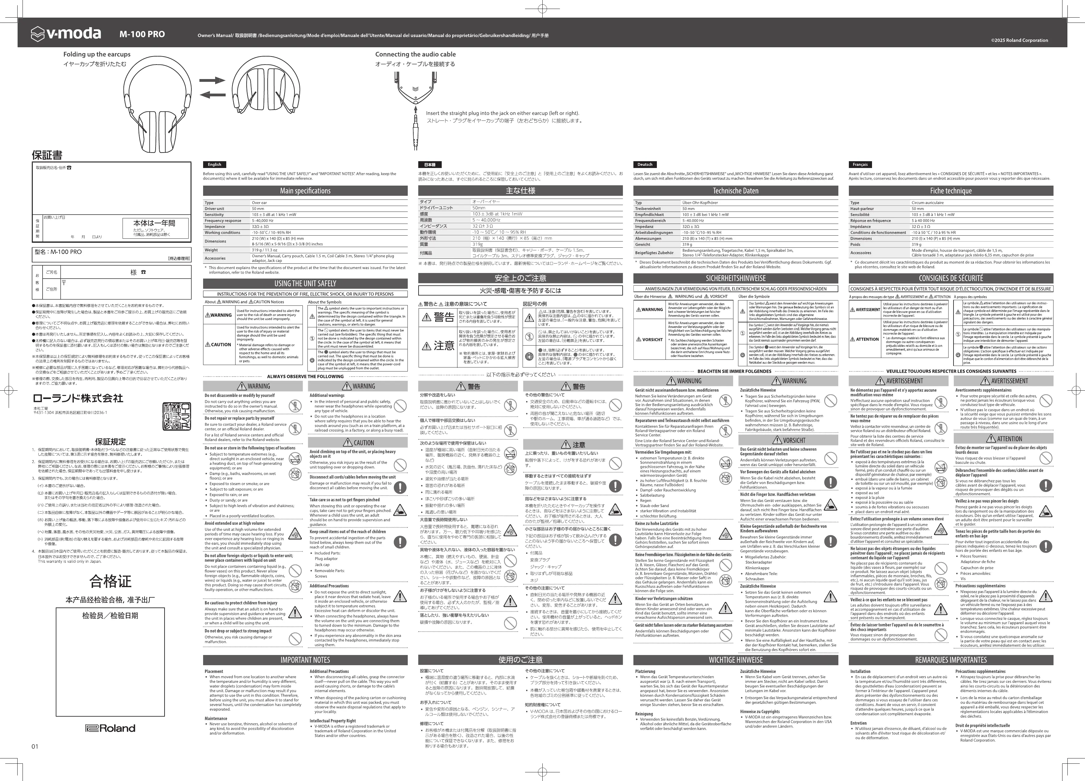 V-Moda M-100 PRO Handleiding