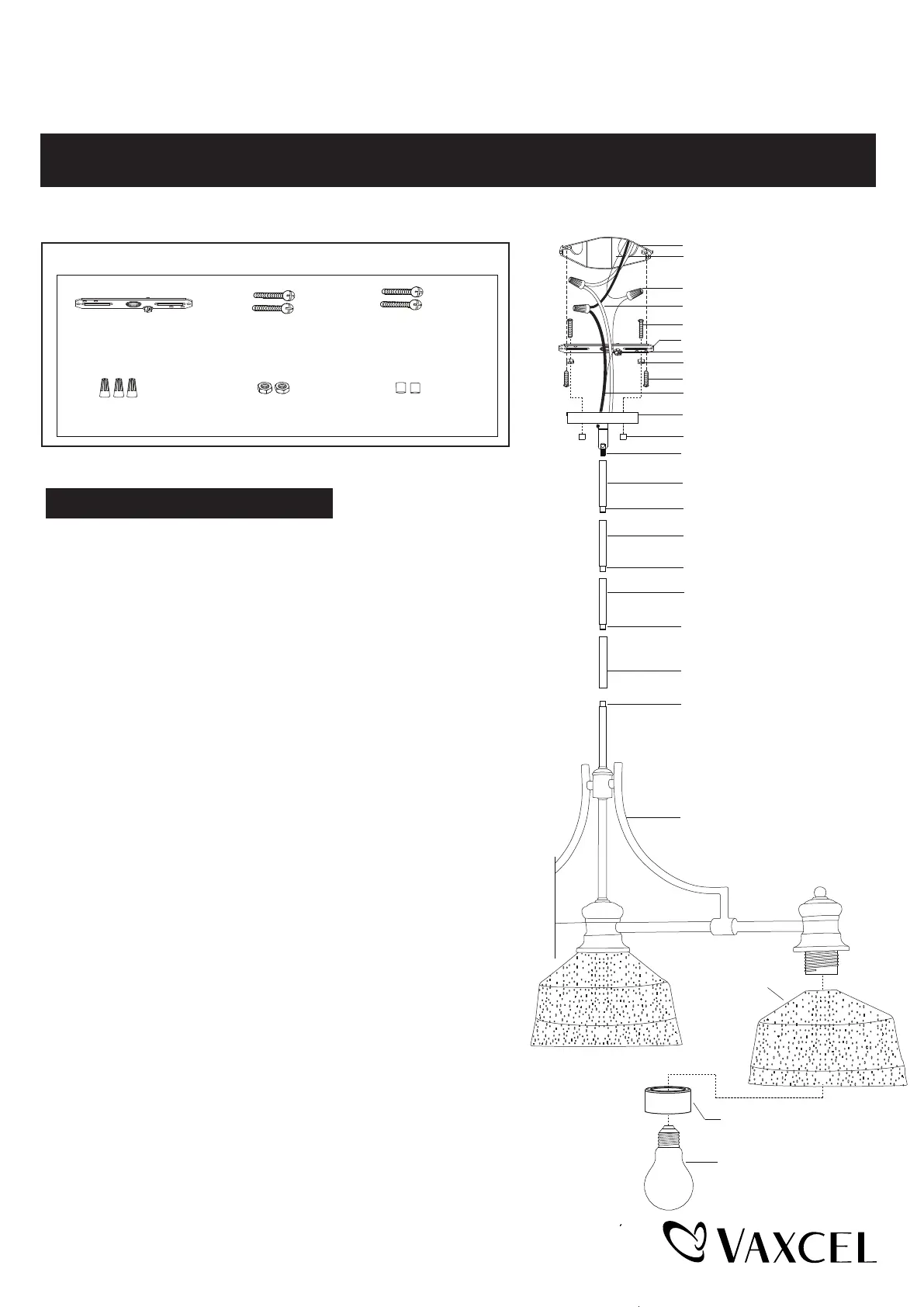7. Attach the glass shades onto the fixture, secure them with the socket rings.
